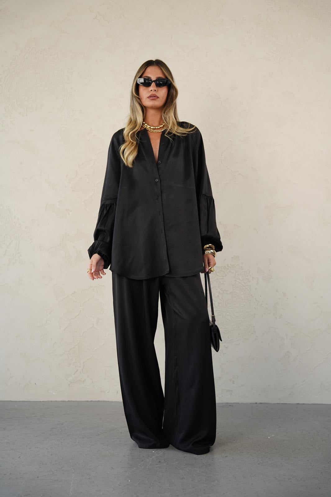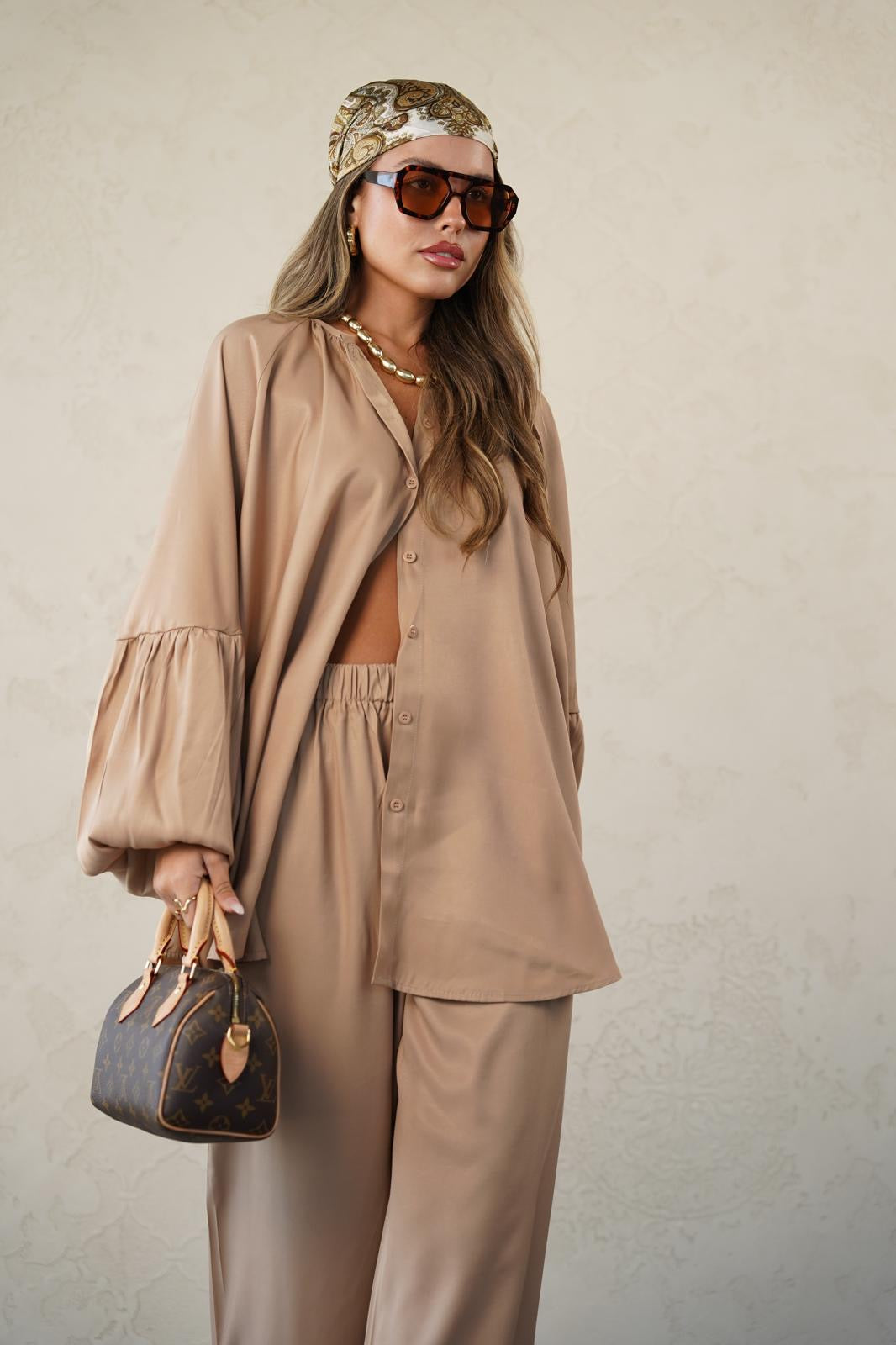החולצה מכופתרת עם שרוול פעמון וגומי למראה נשי ורך 💫