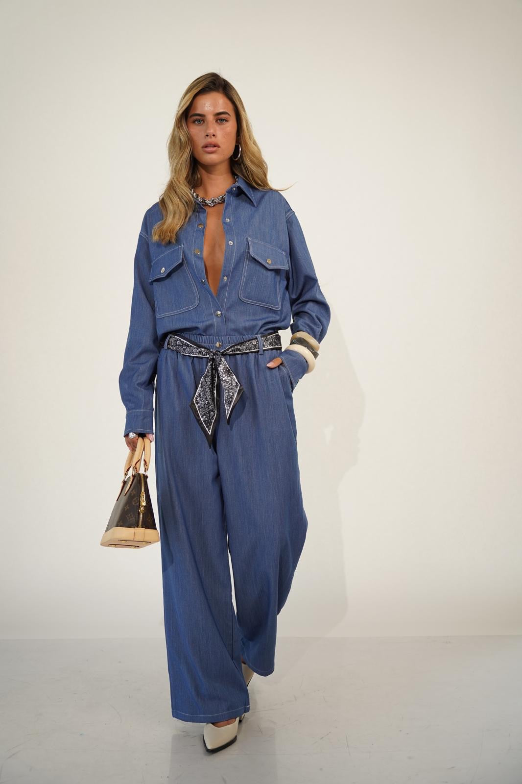 חליפת ג׳ינס לנשים - דגם אריאל בצבעים כחול ג׳ינס, ג׳ינס בהיר וג׳ינס כהה