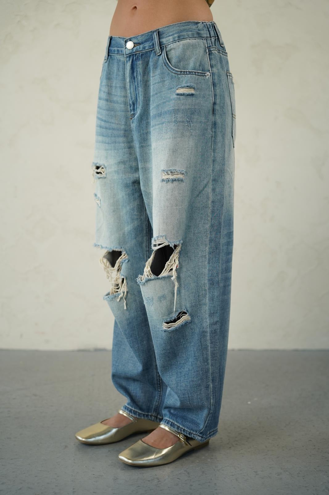 ג׳ינס אוברסייז בסגנון קז׳ואל עם קרעים טרנדיים ושיקיים ✨
