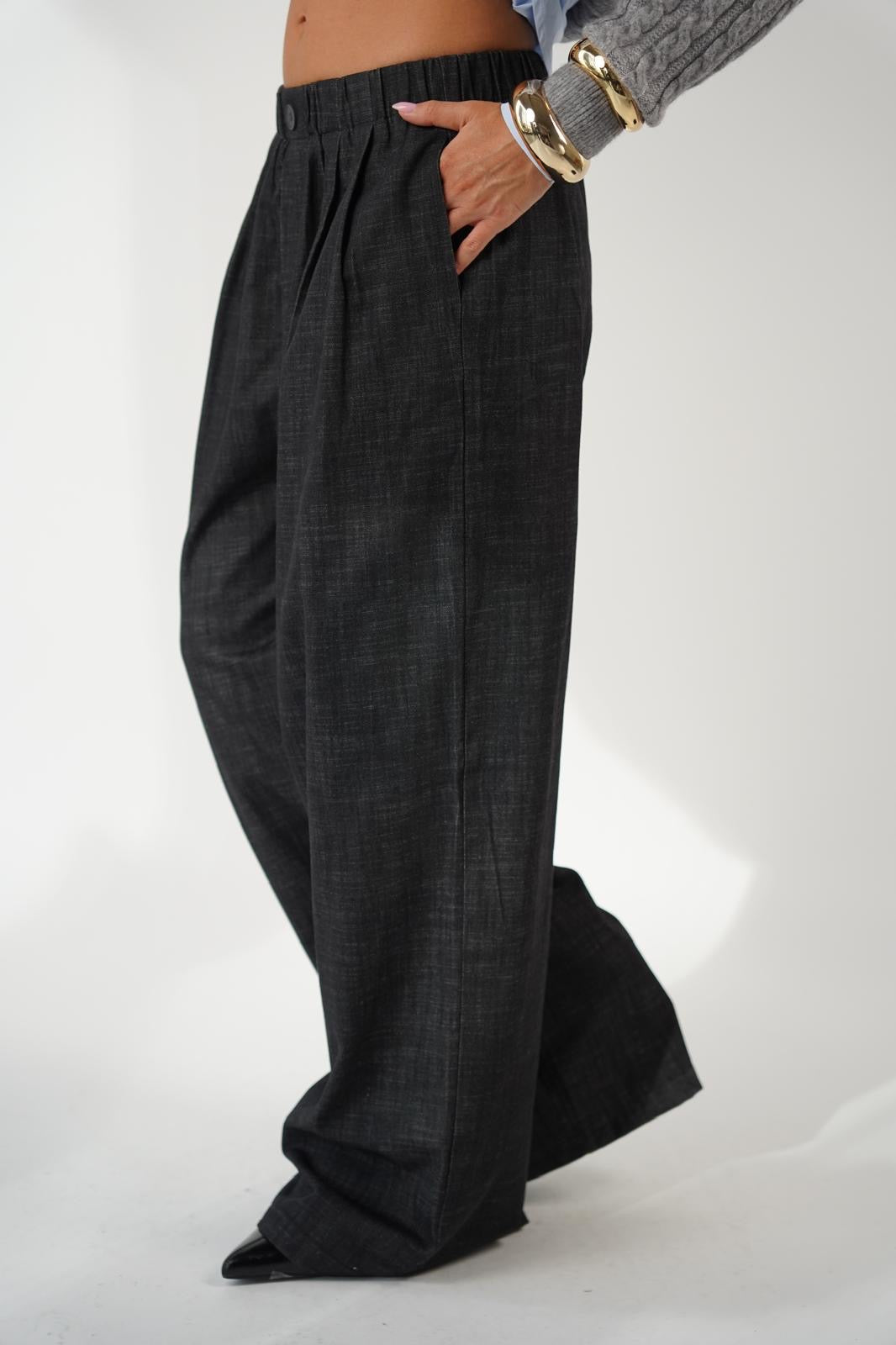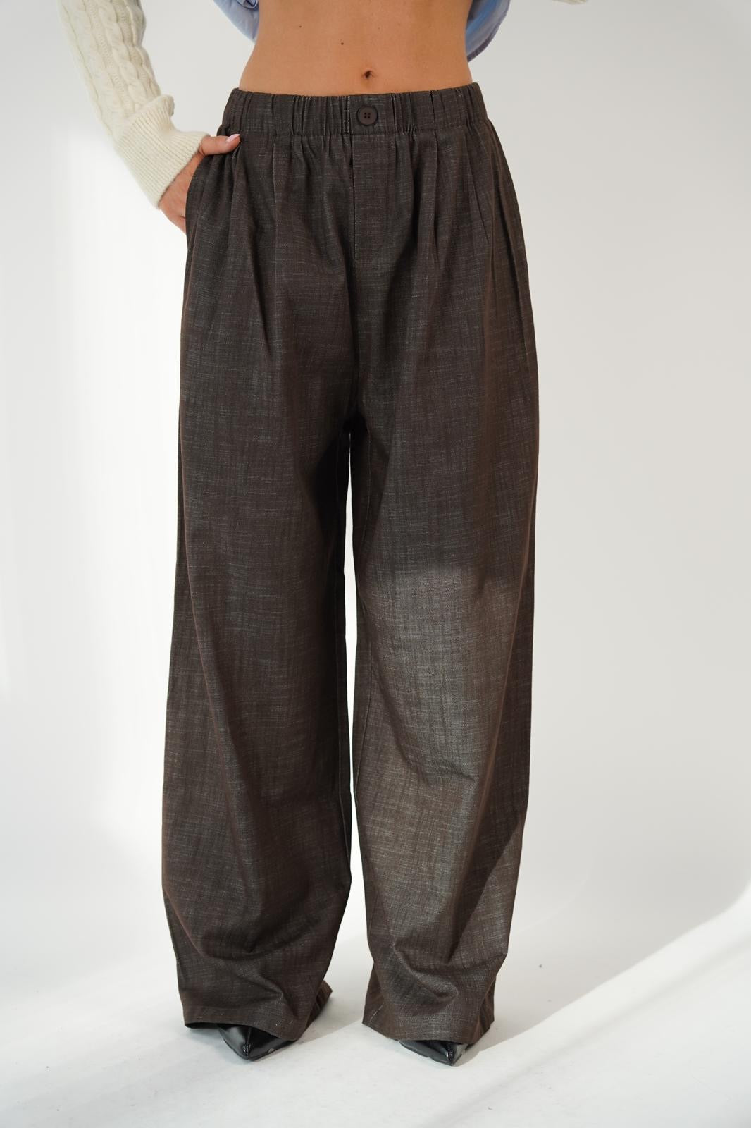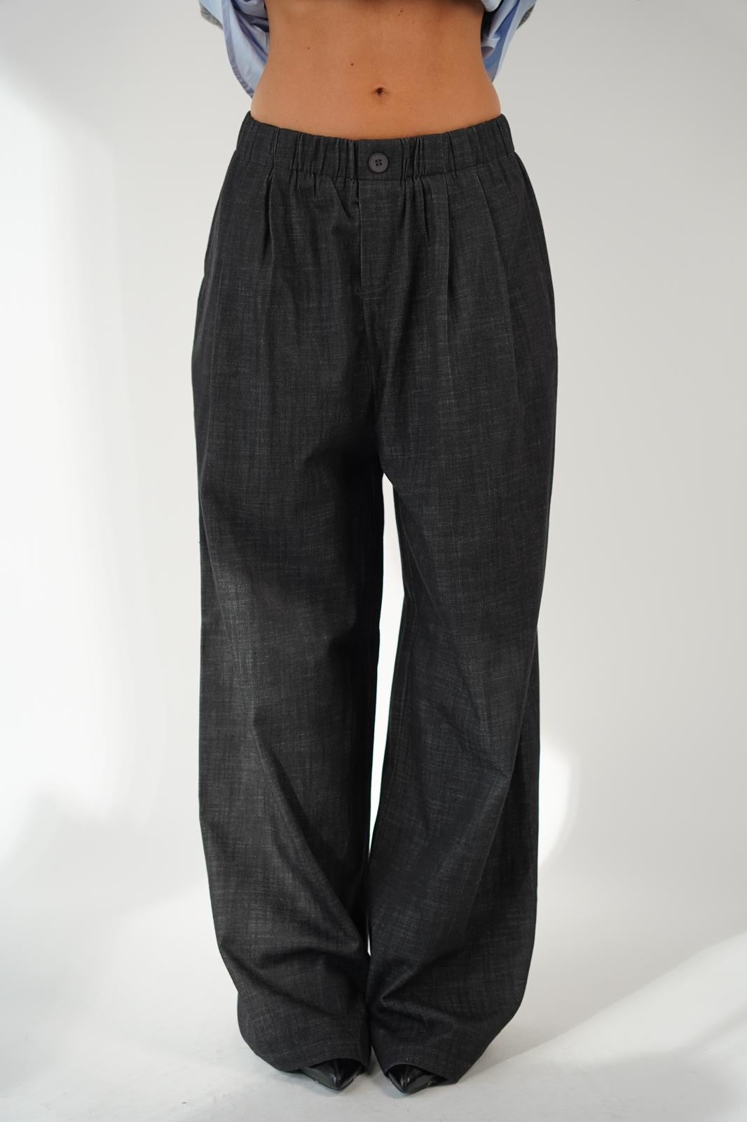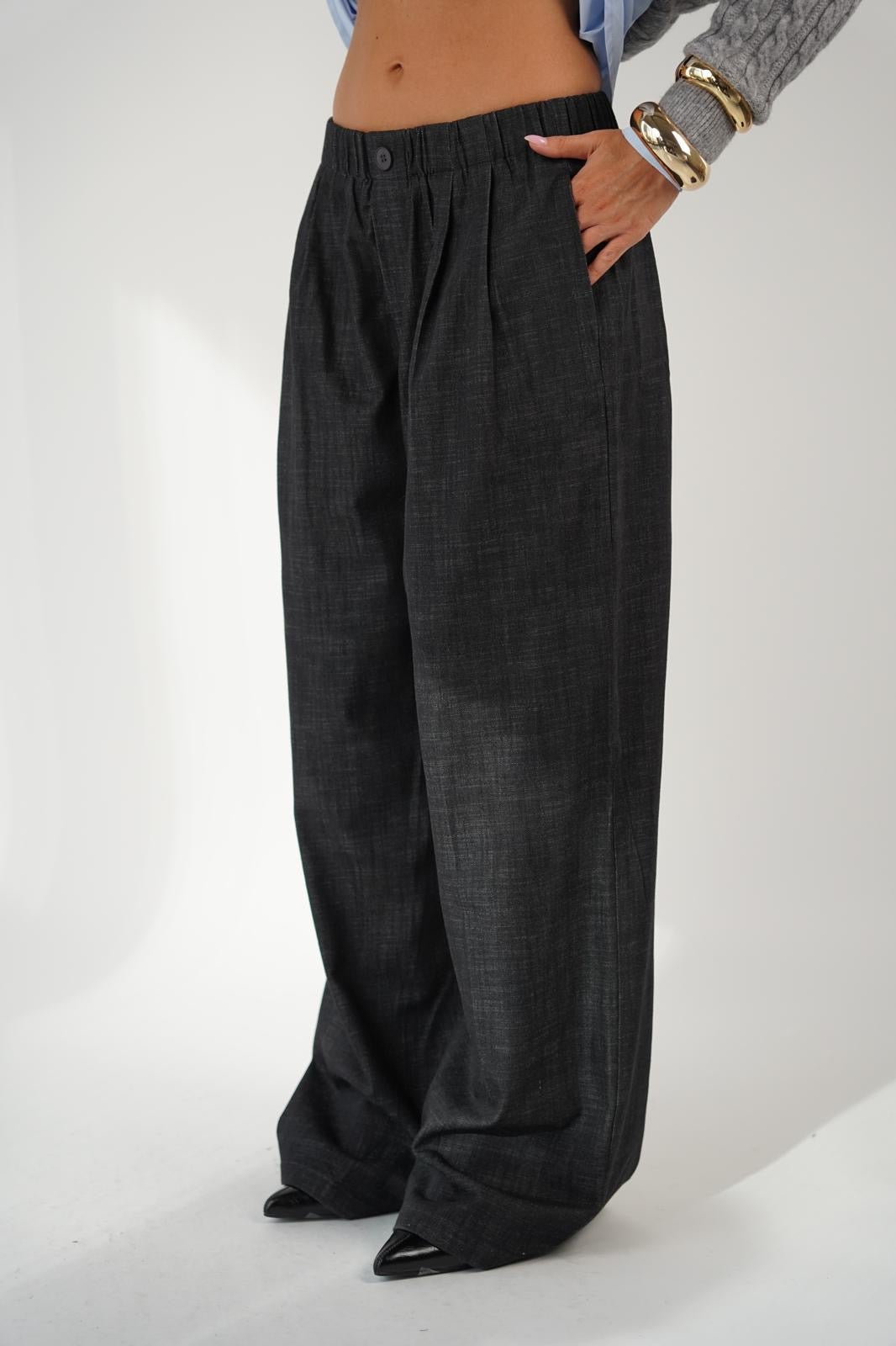 מכנס רייאןמכנס גומי דמוי ג׳ינס בגזרה ישרה עם כיסים בצידי המכנס מבד נעים ואיכותי המכנס קיים בחום , כחול ג׳ינס ושחור וואן סייז