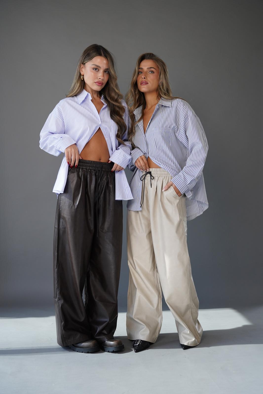 מכנס עור אוברסייז לנשים - דגם גריי בצבע שחור