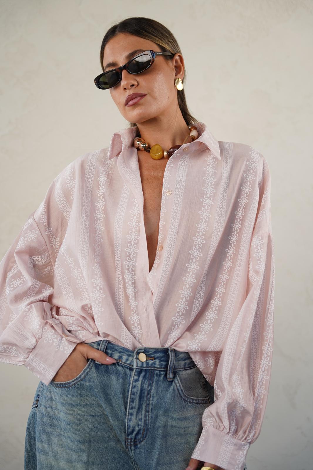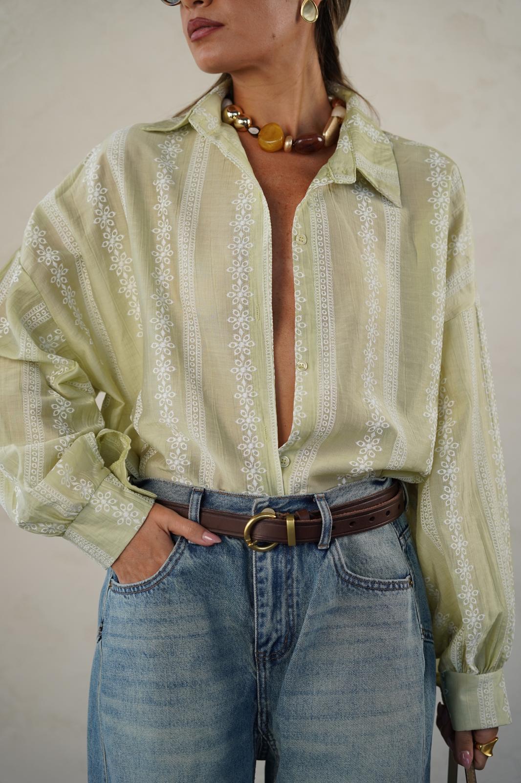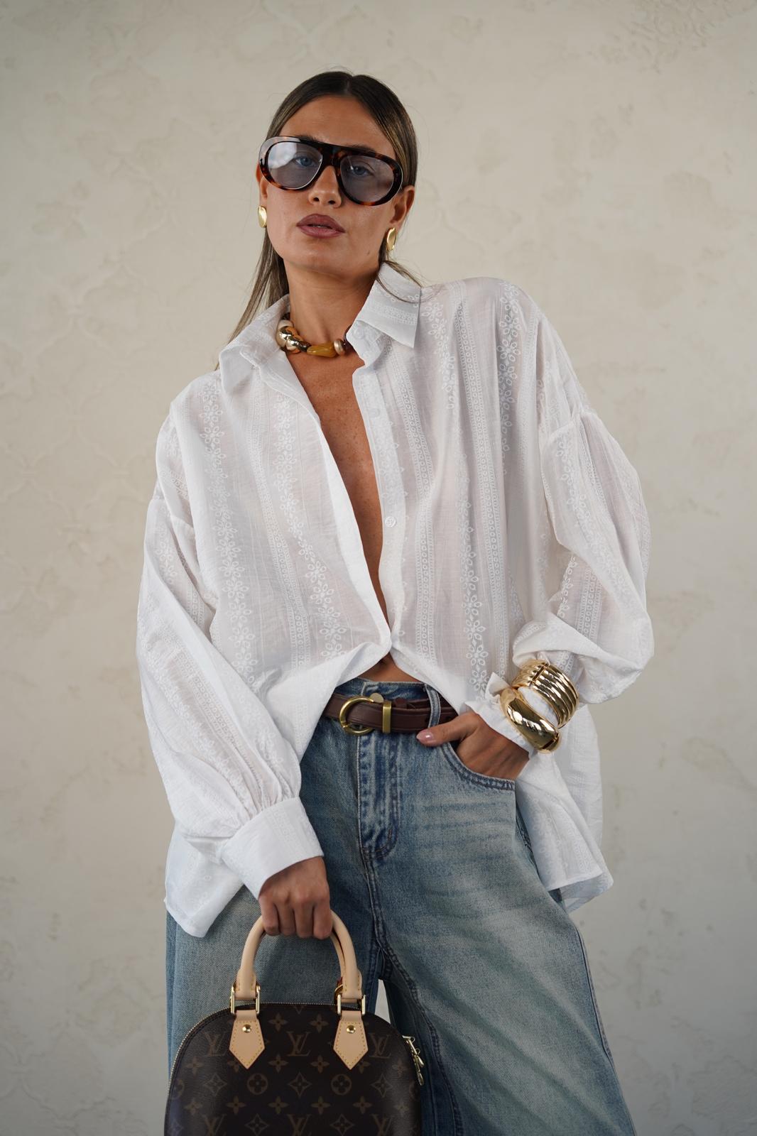 חולצה מכופתרת בגזרה אוברסייז עם רקמה עשירה ועדינה שמעניקה מראה קלאסי ומוקפד ✨