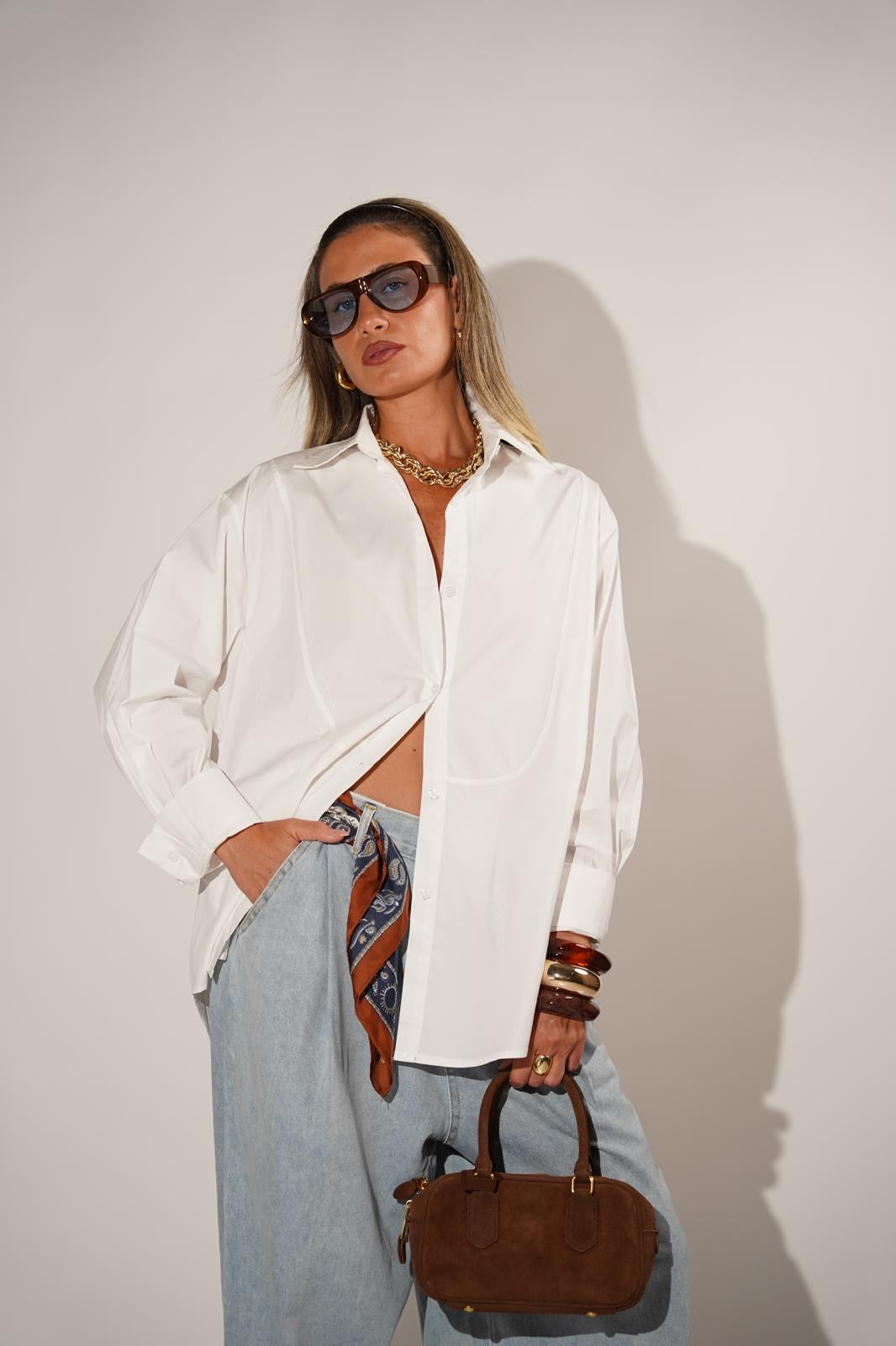 חולצה מכופתרת אלגנטית בגזרה אוברסייז עם מראה נשפך ונוח 👗