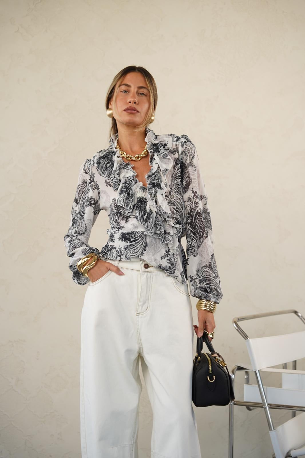 חולצת מעטפה עם הדפס ייחודי בגזרה אלגנטית ונשית 💐