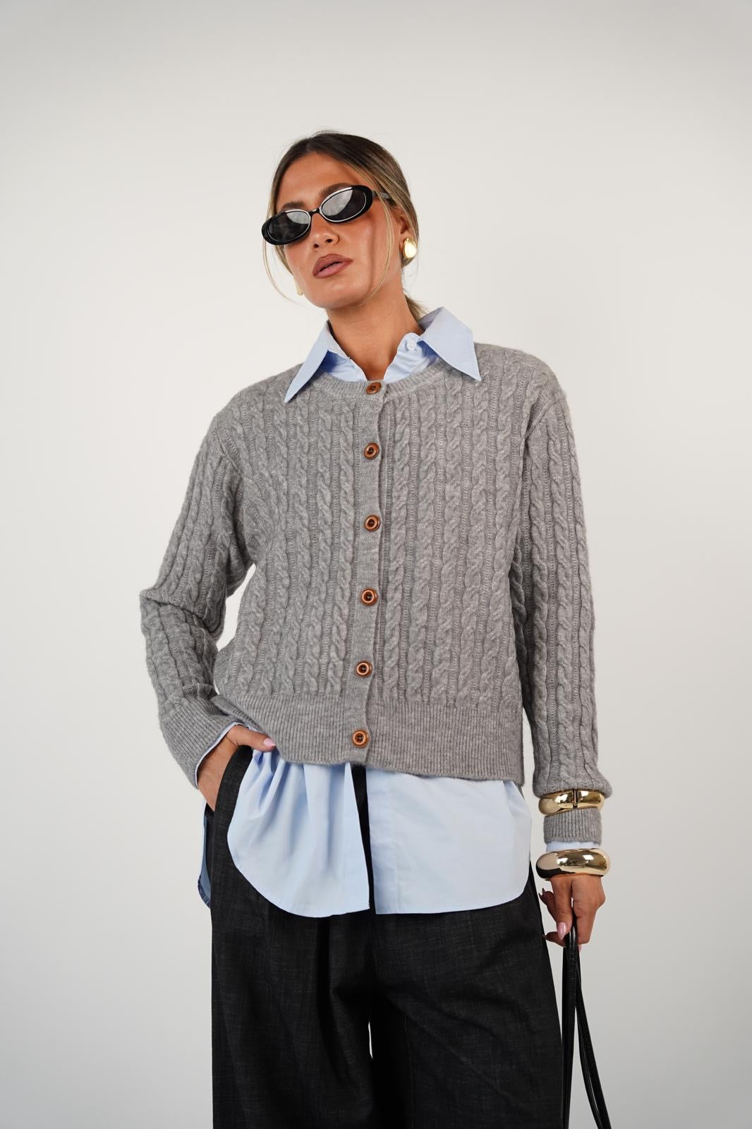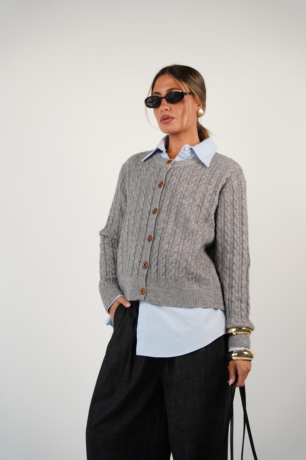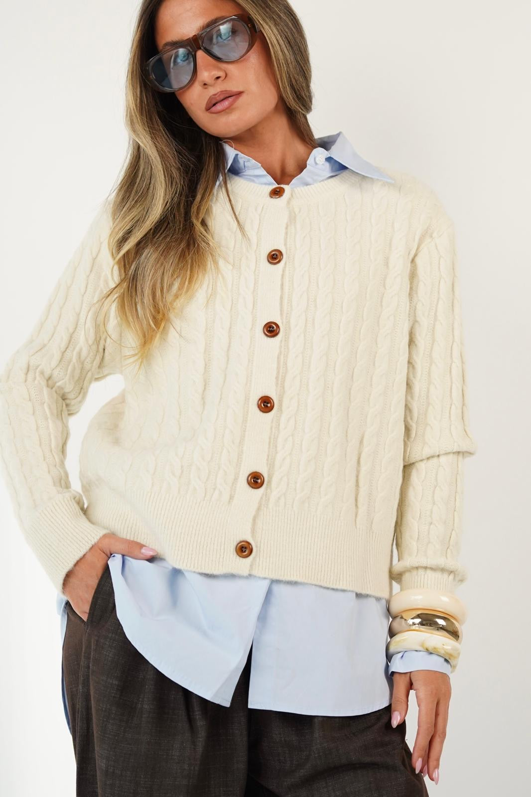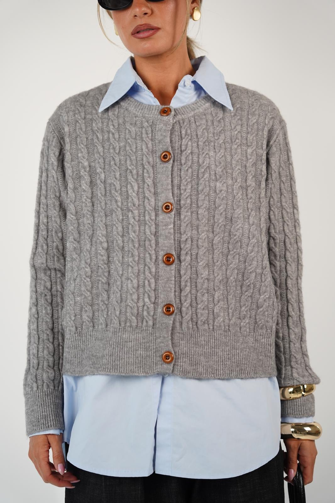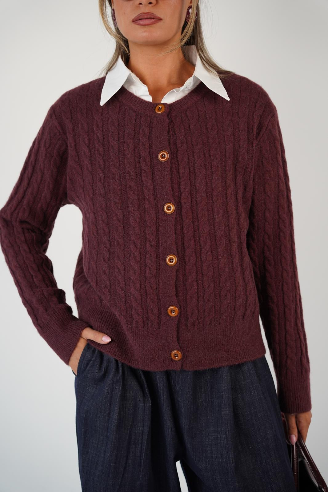 סריג צמות בגזרת קרדיגן עם כפתורים