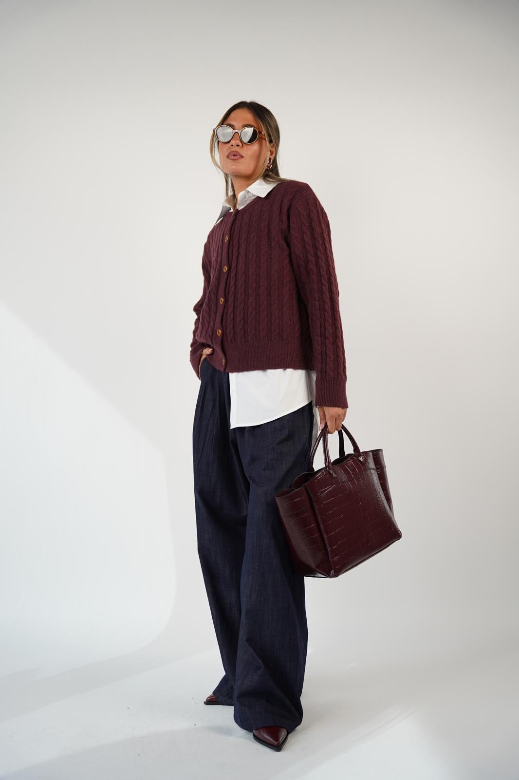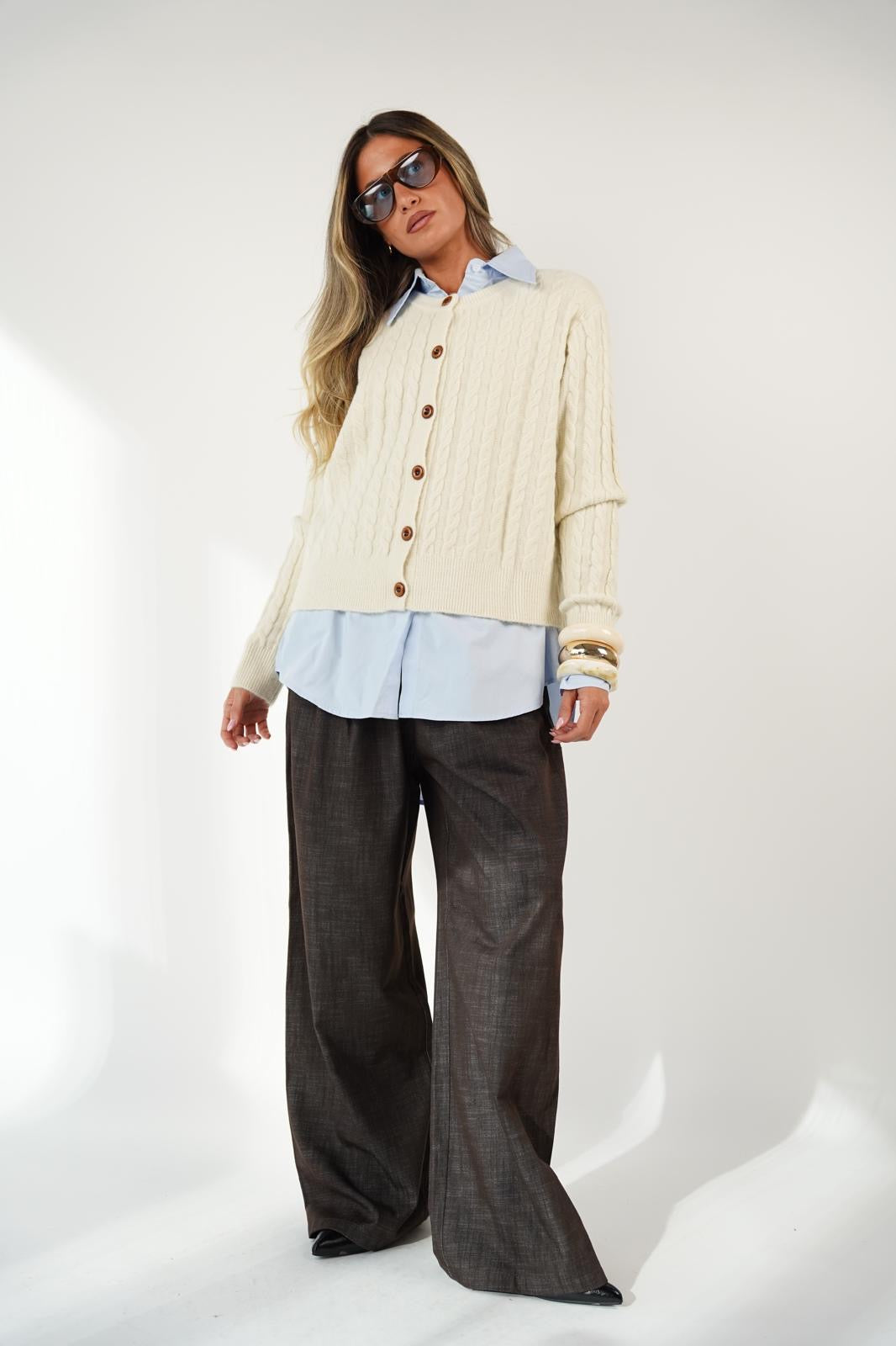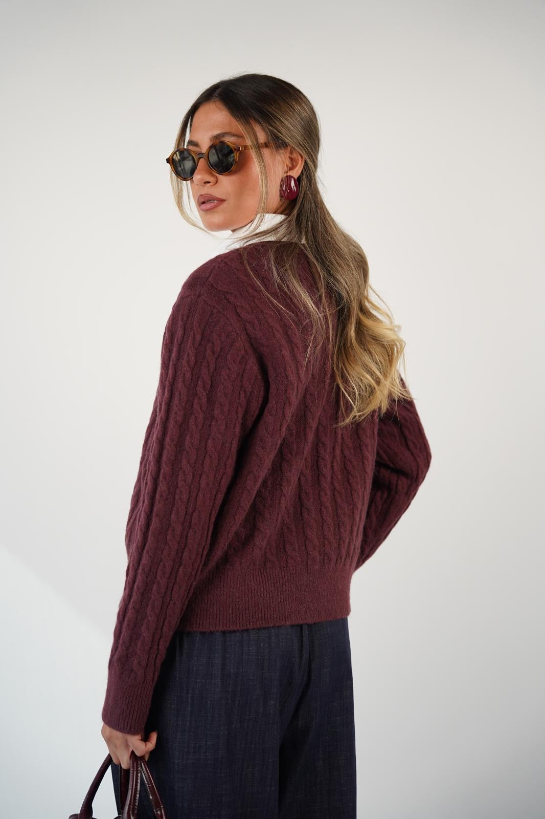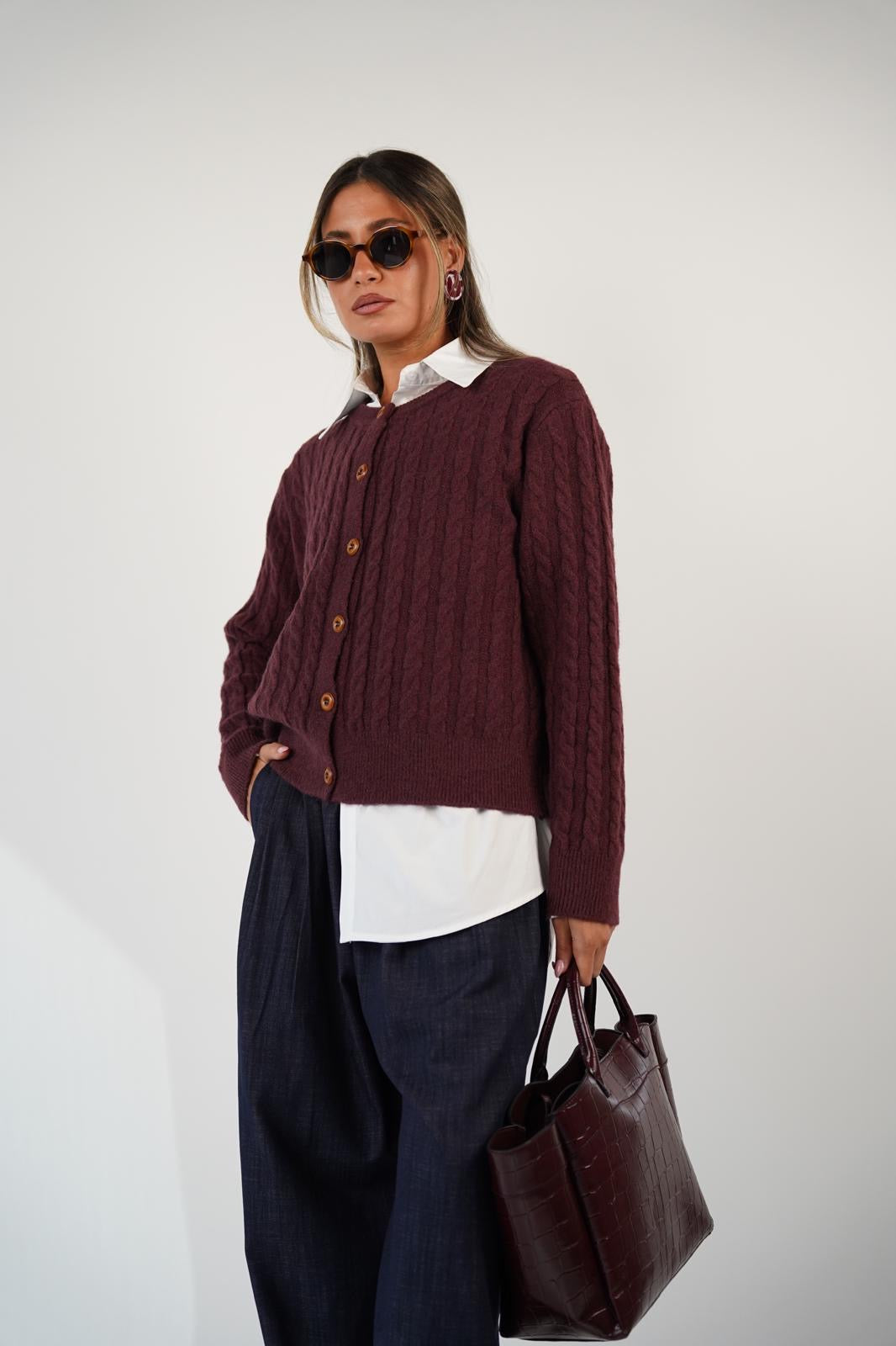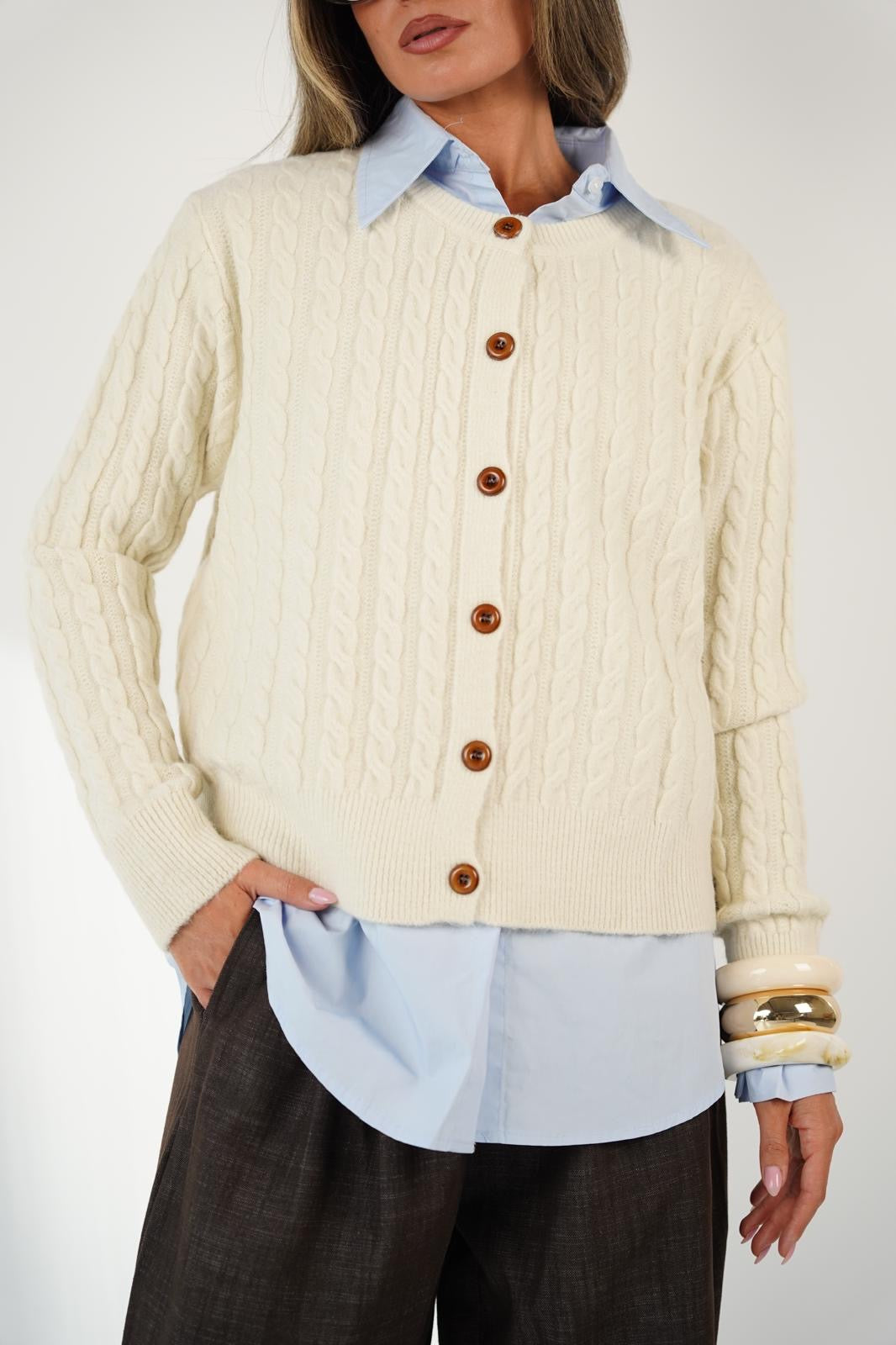 סריג צמות בגזרת קרדיגן עם כפתורים