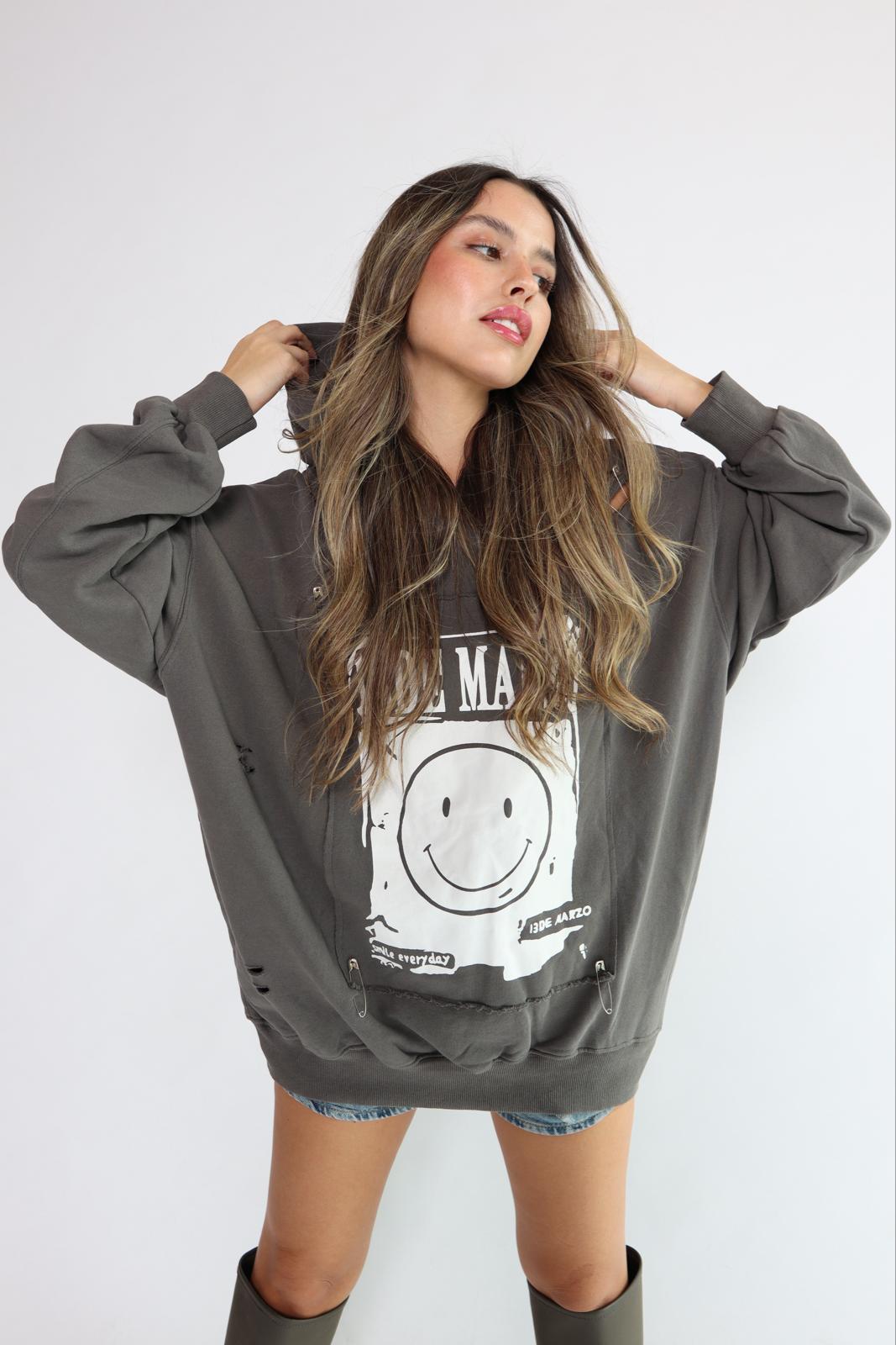 טישרט אוברסייז עם שרוול ארוך לנשים - דגם יולי בצבעים, אפור, שחור ולבן