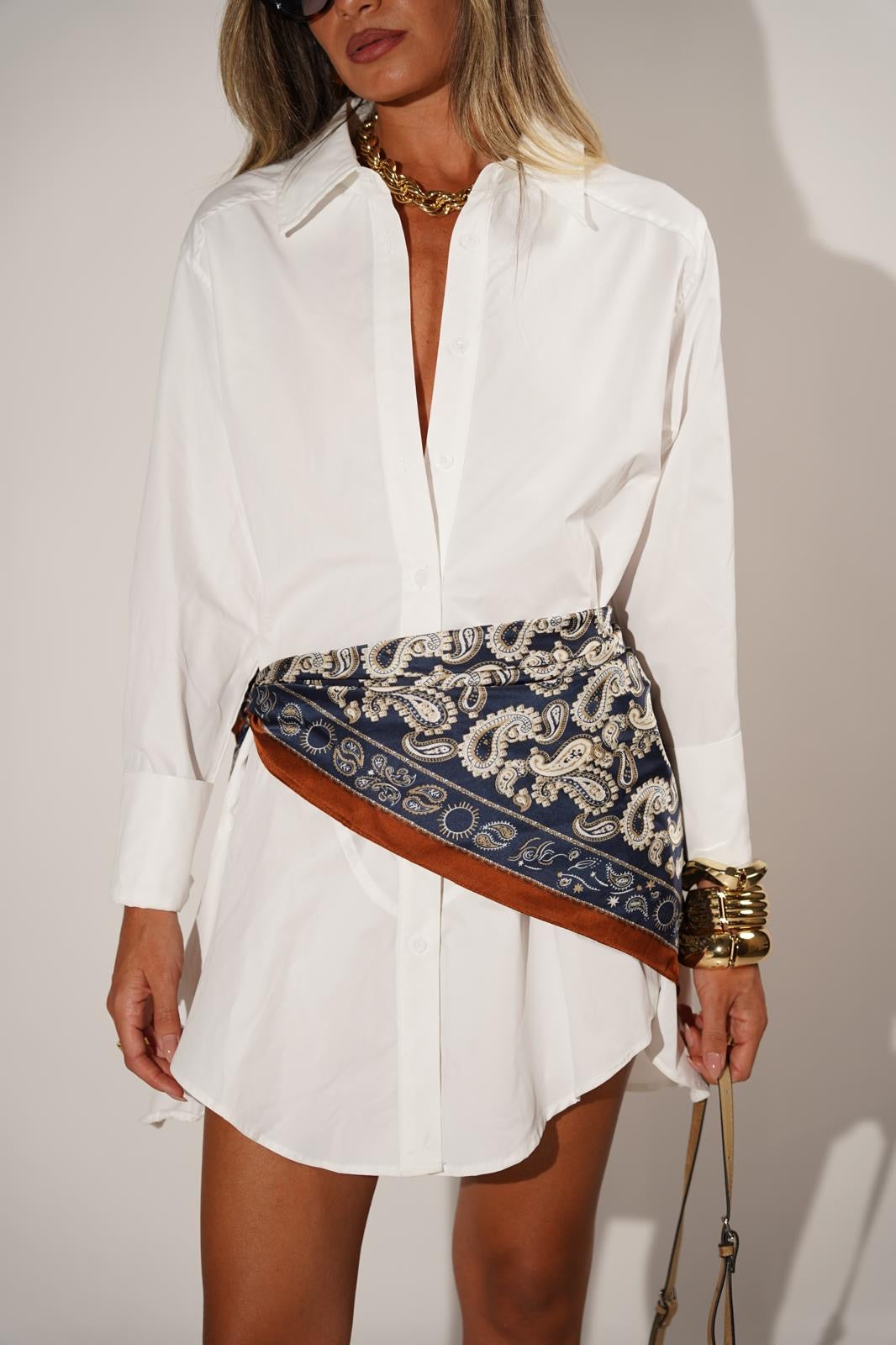 שמלה מכופתרת עם צווארון גדול - דגם לופז בצבע לבן