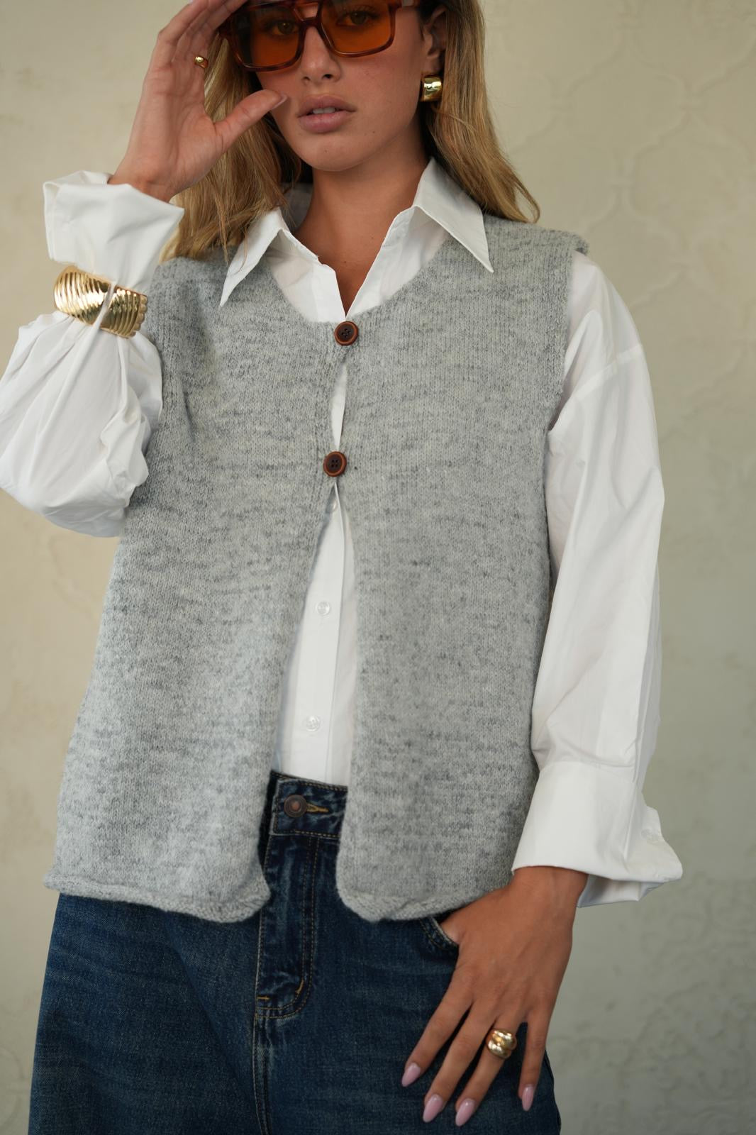 האפודה זמינה בצבע אפור קלאסי שמתאים לכל לוק ⚪️