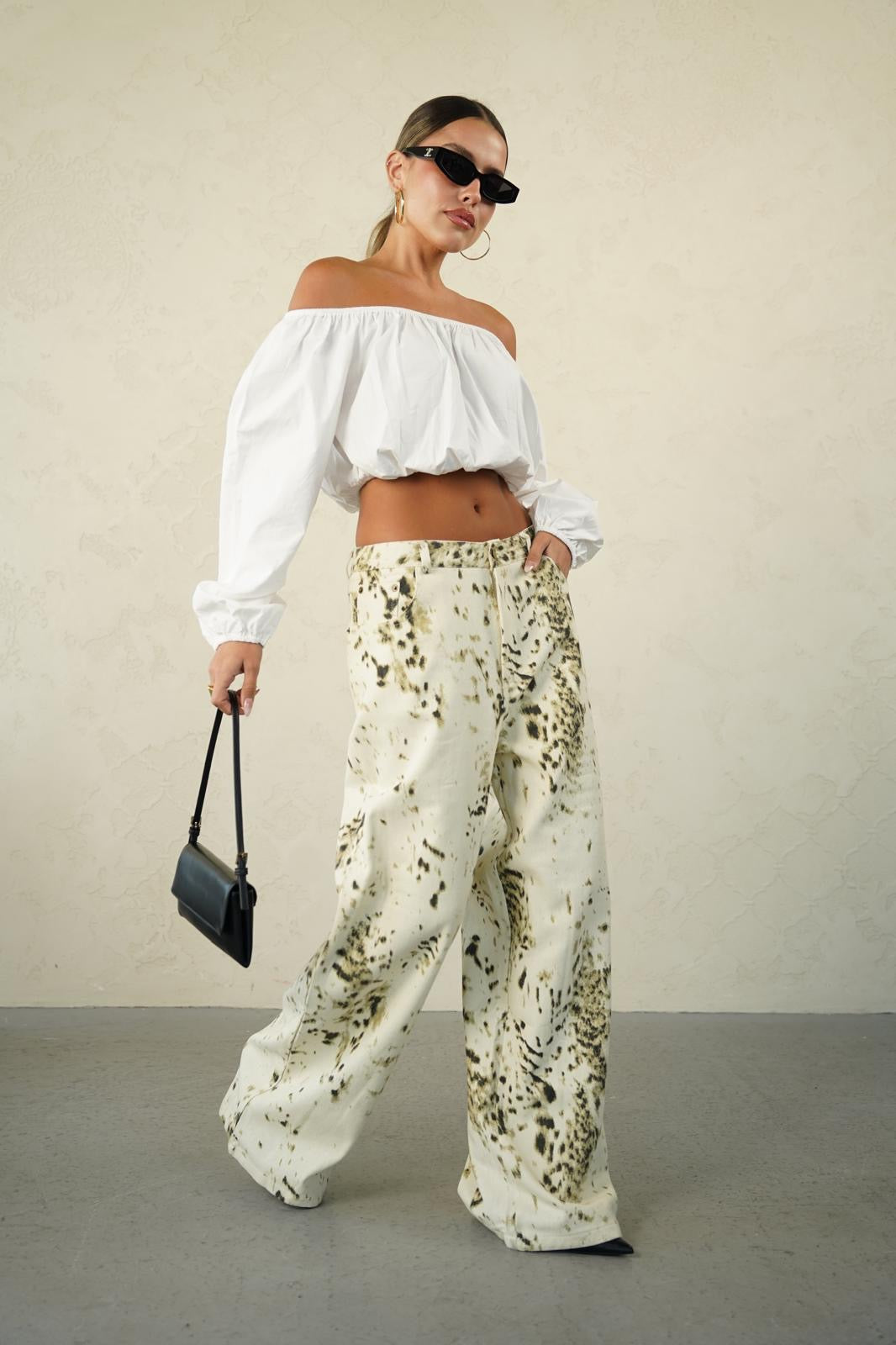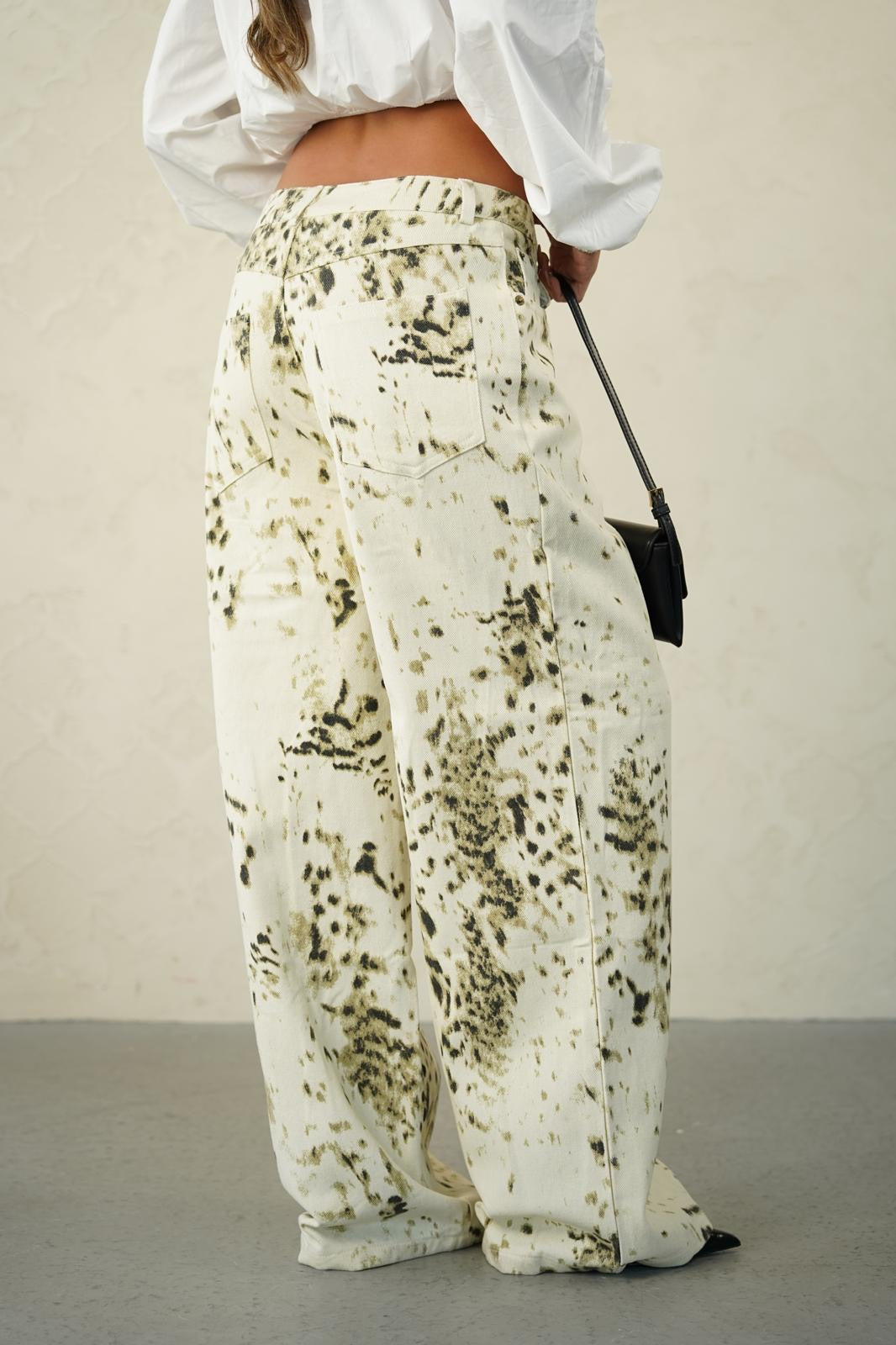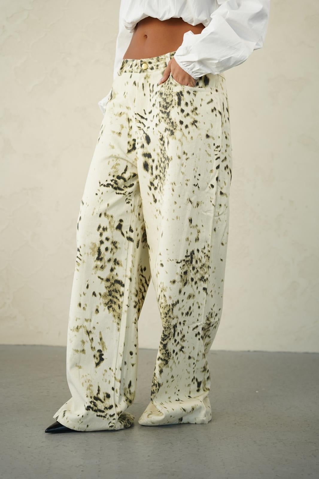 ג׳ינס אוברסייז ייחודי עם הדפס מנומר עדין בצבע קרם 🐆