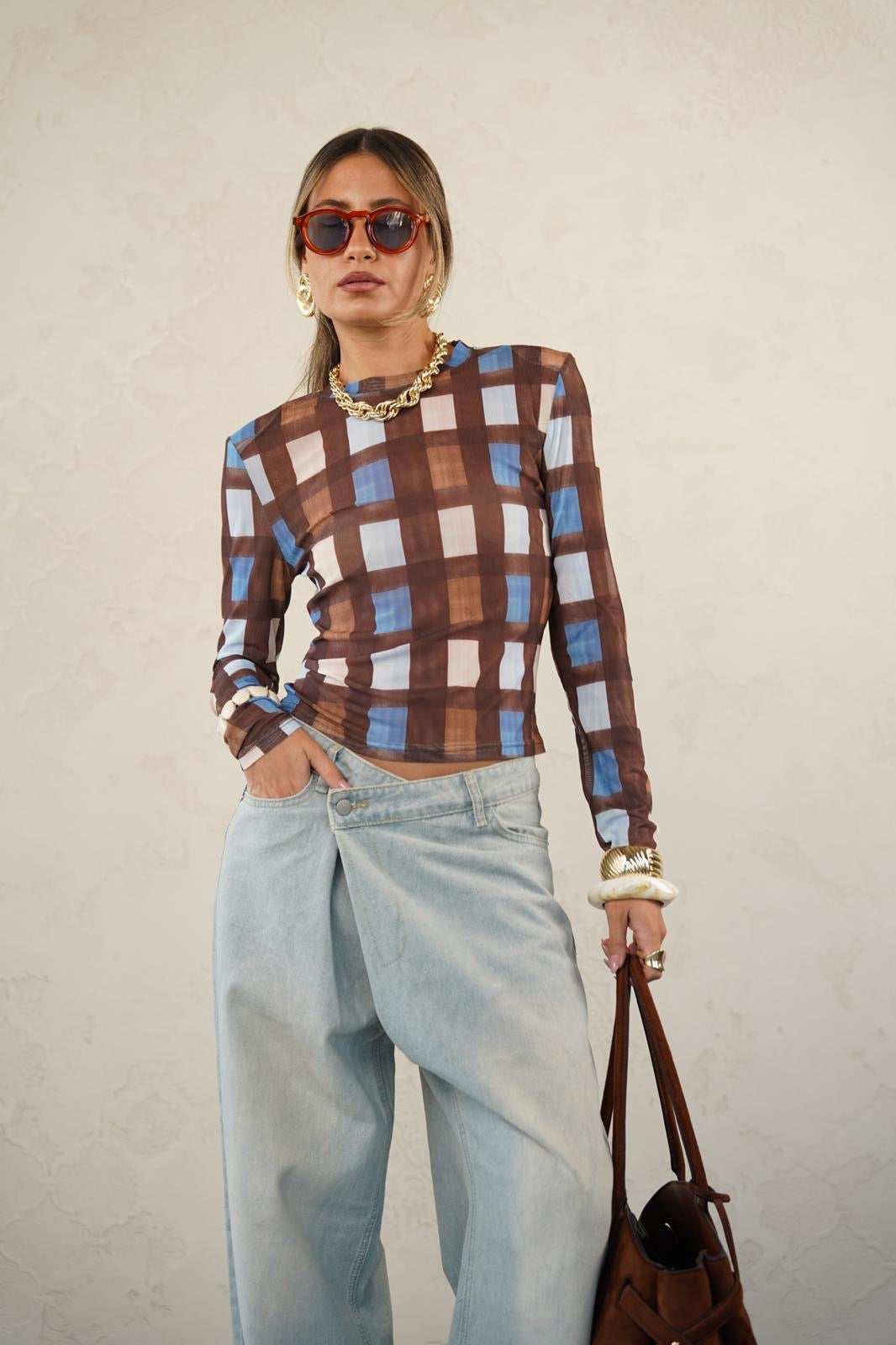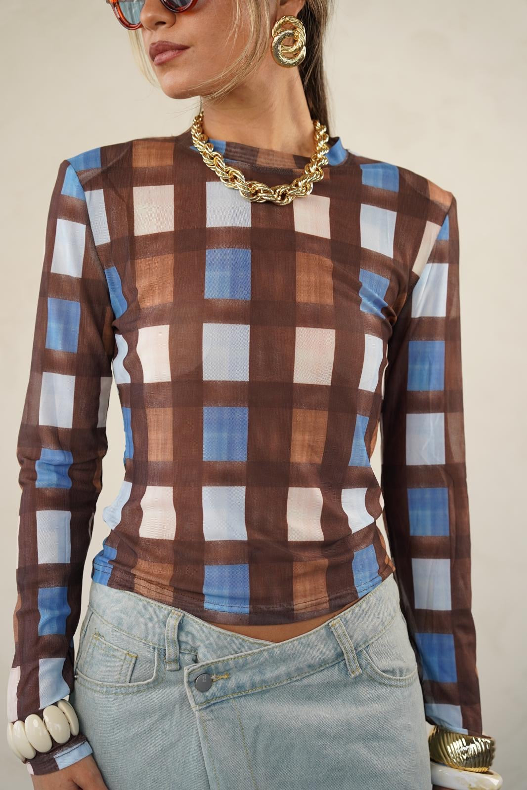 👚 חולצה שקפקפה עם הדפס ריבועים עדין לווייב ייחודי ונוכחות שקטה בסגנון ✨