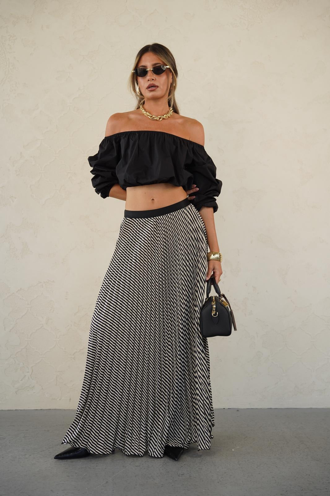 חולצה עם שרוולים תפוחים לנשים - דגם קתרין בצבעים שחור ולבן