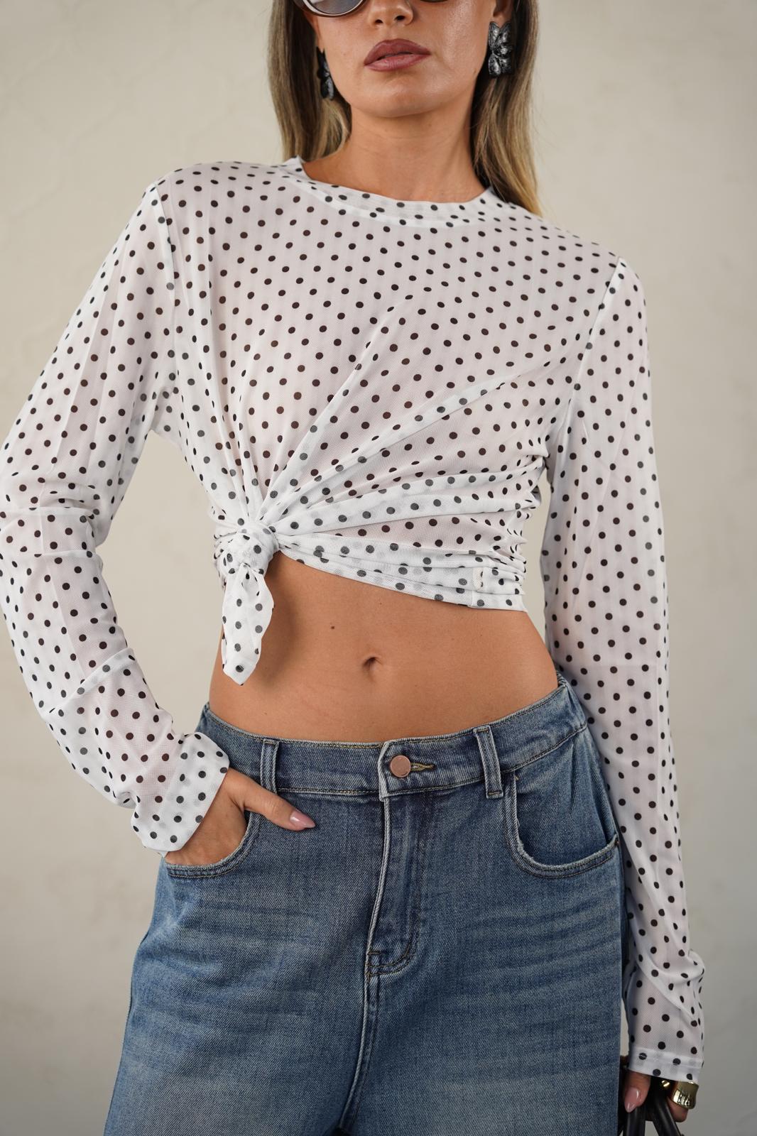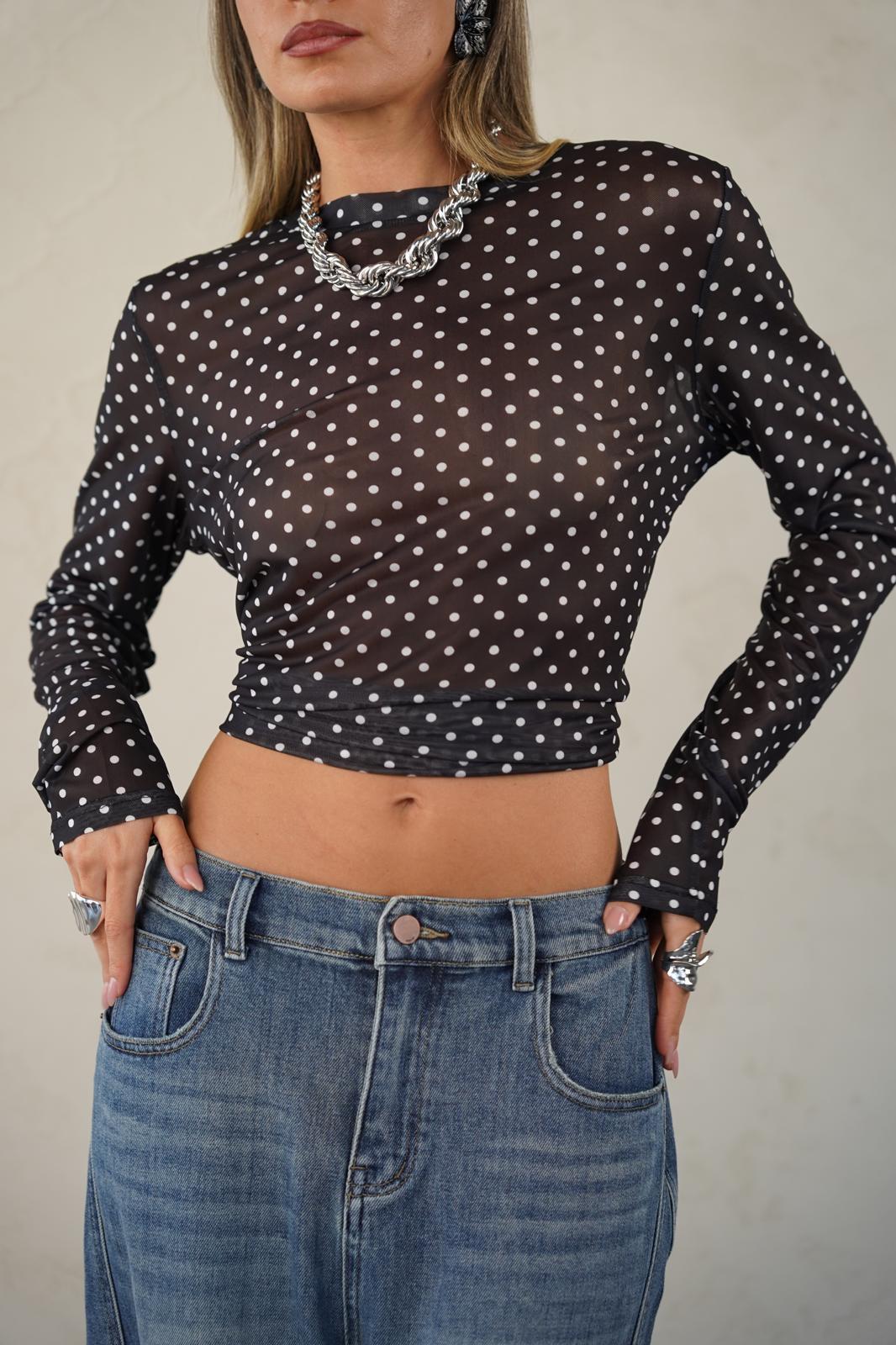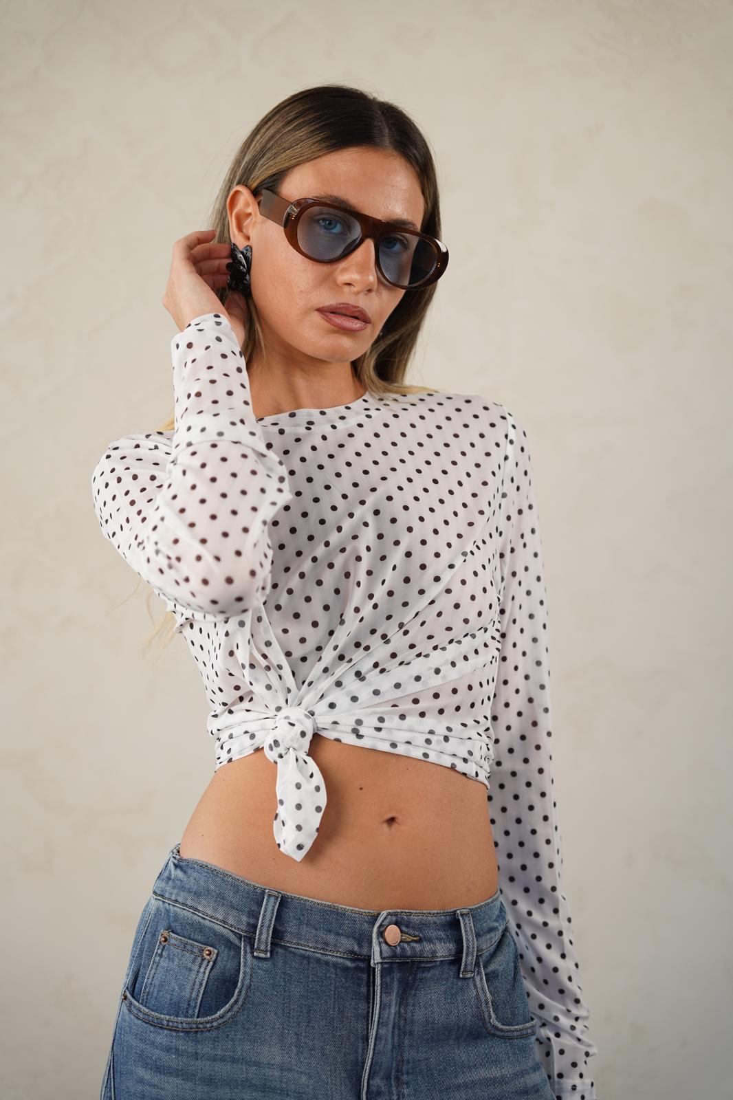 חולצה שקפקפה עם הדפס נקודות עדין ונשי במיוחד ✨