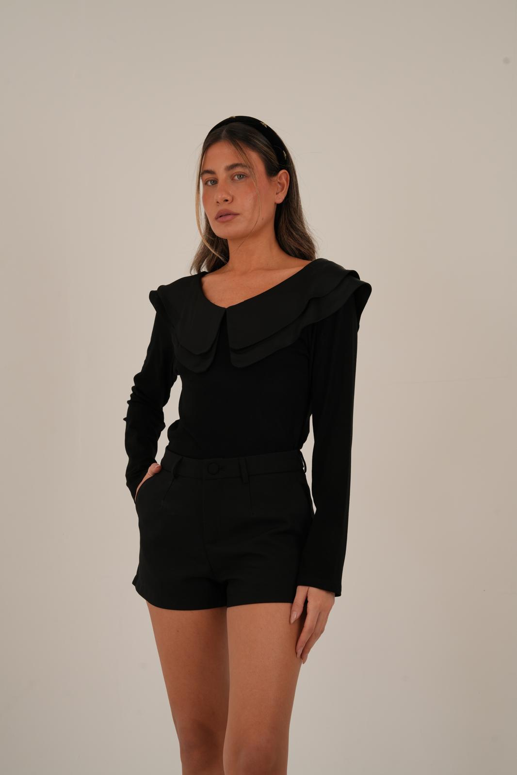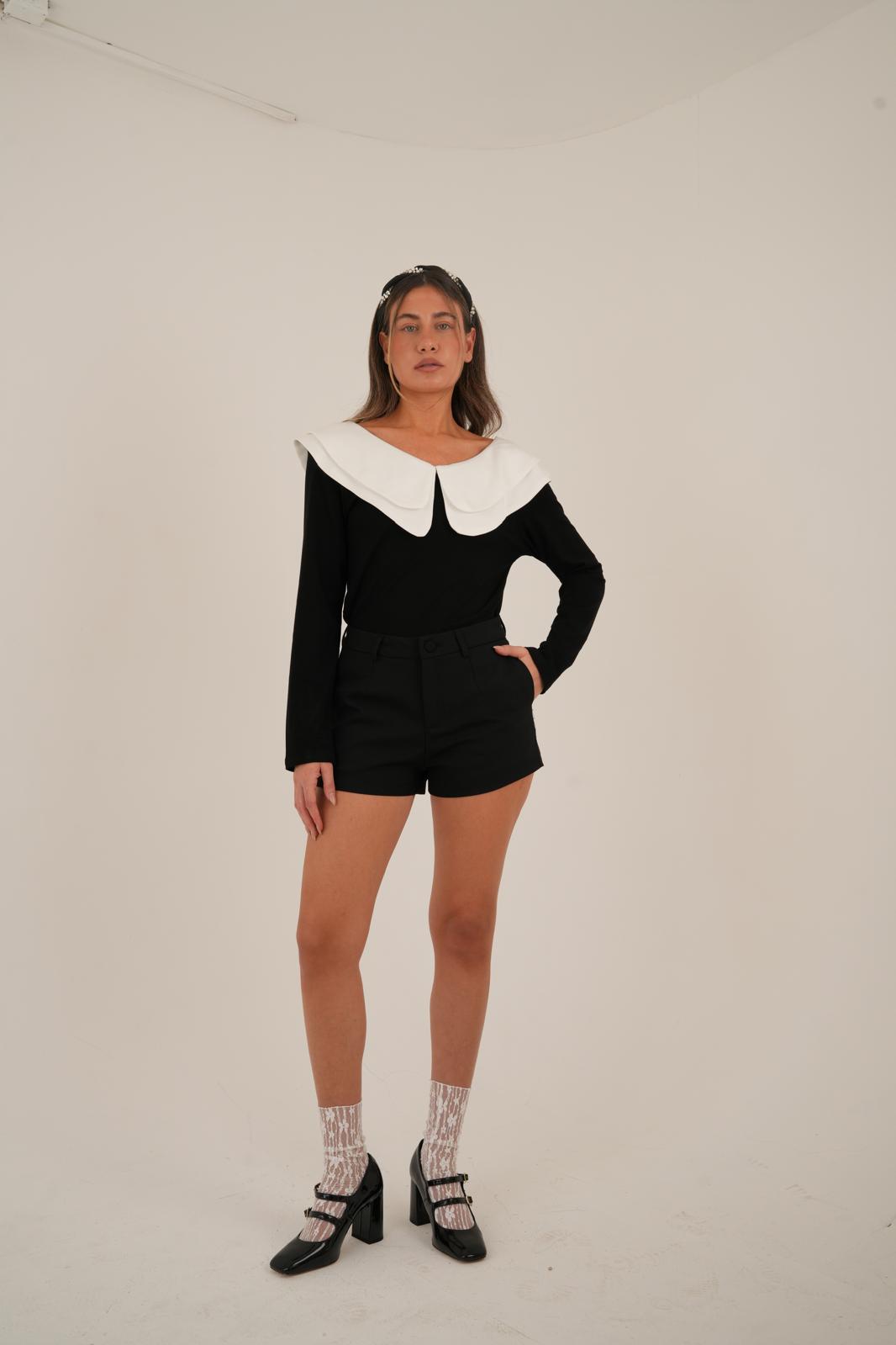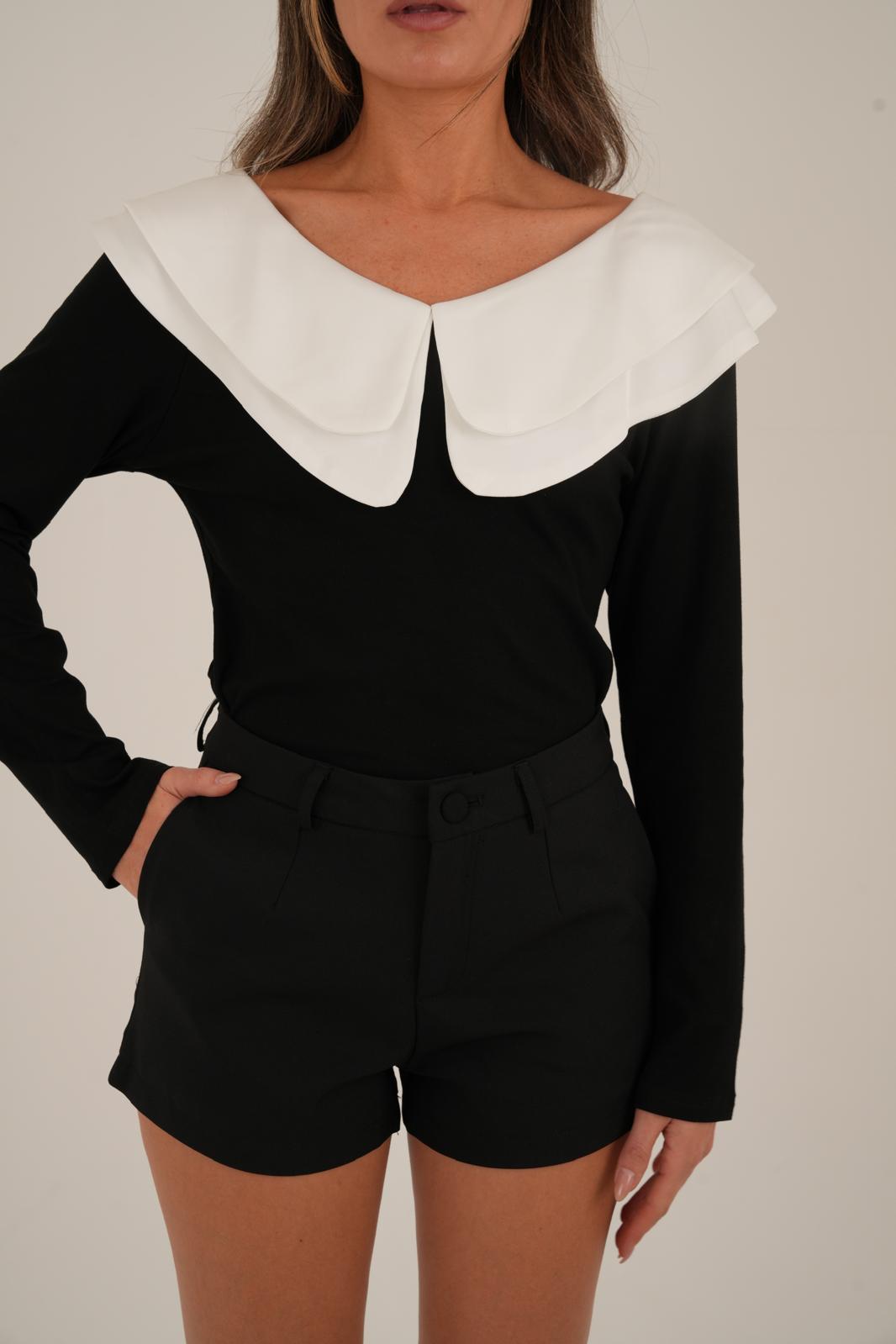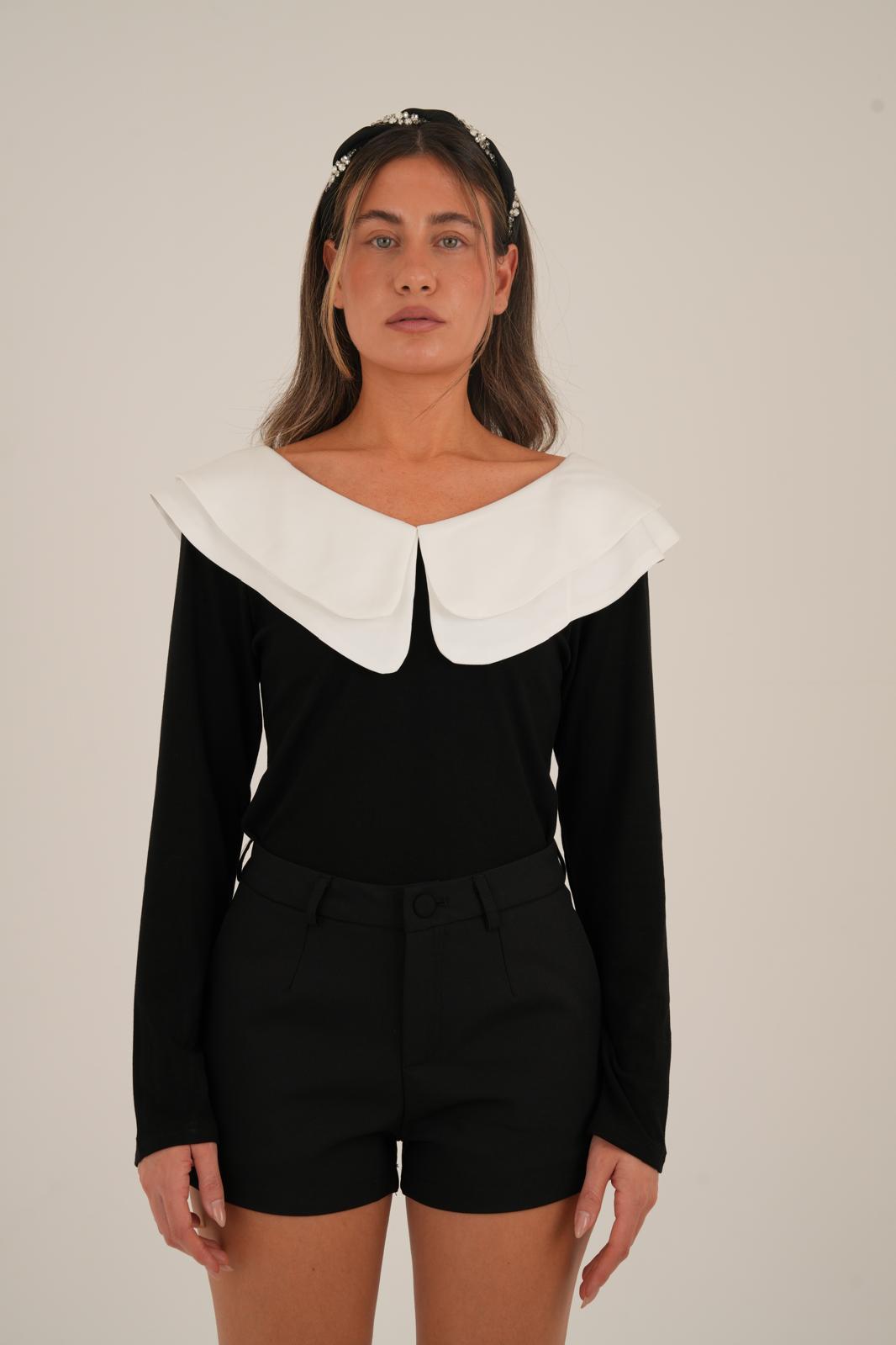 חולצה משולבת עם צווארון מלכים למראה אלגנטי ומדויק עיצוב ייחודי שמשדר סטייל מתוחכם וקליל גזרה נוחה ומחמיאה שמתאימה ללבישה יומיומית קיימת ב- 2 צבעים שחור ושחור לבן מידת וואן סייז בגזרה נוחה המתאימה עד מידה 40