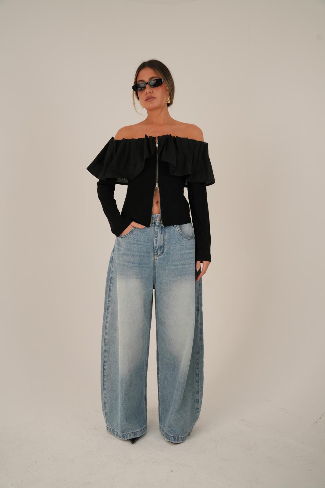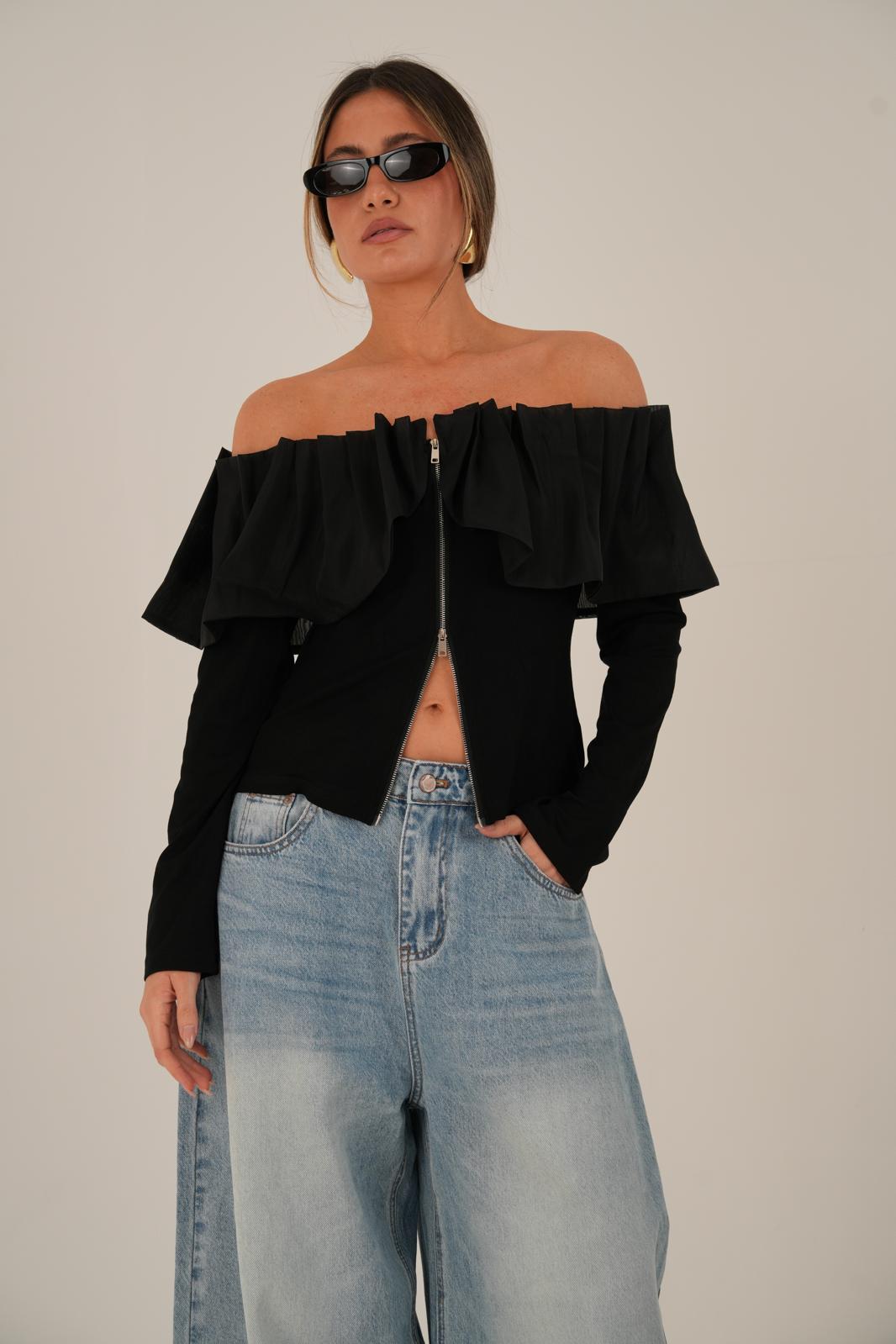 חולצה מיוחדת עם נוכחות ועיצוב ייחודי רוכסן דו כיווני לאורך החולצה לסגירה ולמשחקי סטייל מפתח משולב שיפון למראה אלגנטי ומעודן החולצה קיימת ב- 2 צבעים, שחור ולבן מידת וואן סייז בגזרה מחמיאה המתאימה עד מידה 38