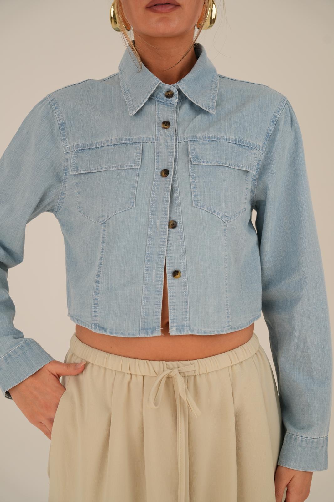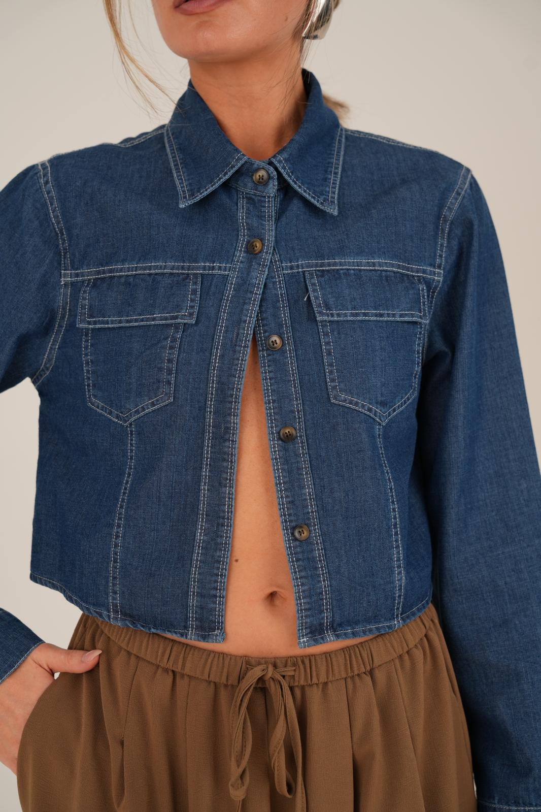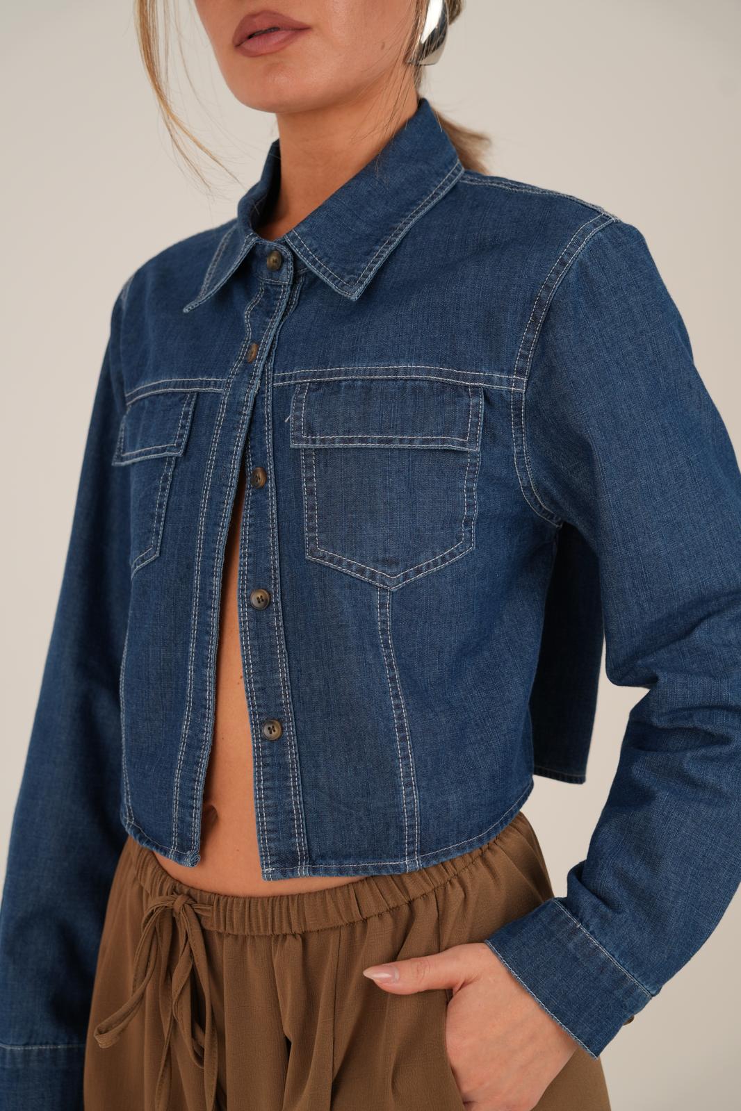 חולצת ג׳ינס קרופ חתיכית עם תיפורים מודגשים עשויה מבד דק ונעים ללבישה נוחה עיצוב מחמיא עם וייב צעיר ועדכני החולצה קיימת ב- 2 צבעים, ג׳ינס בהיר וג׳ינס כהה מידת וואן סייז בגזרה מחמיאה המתאימה עד מידה 38