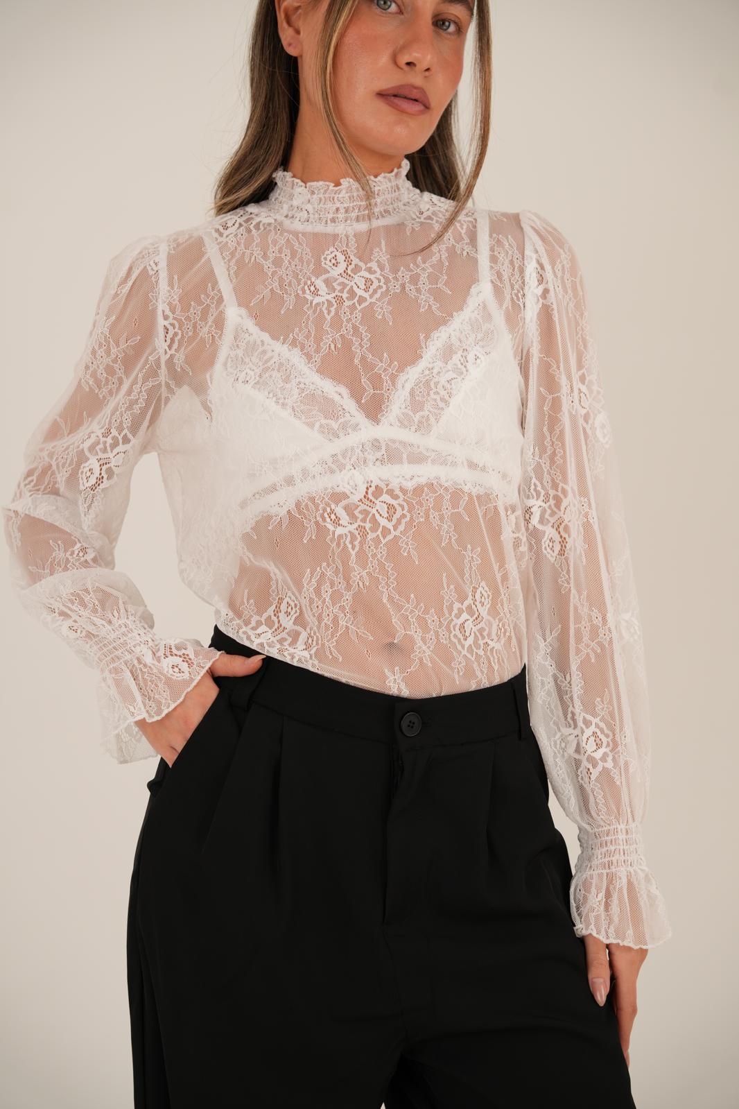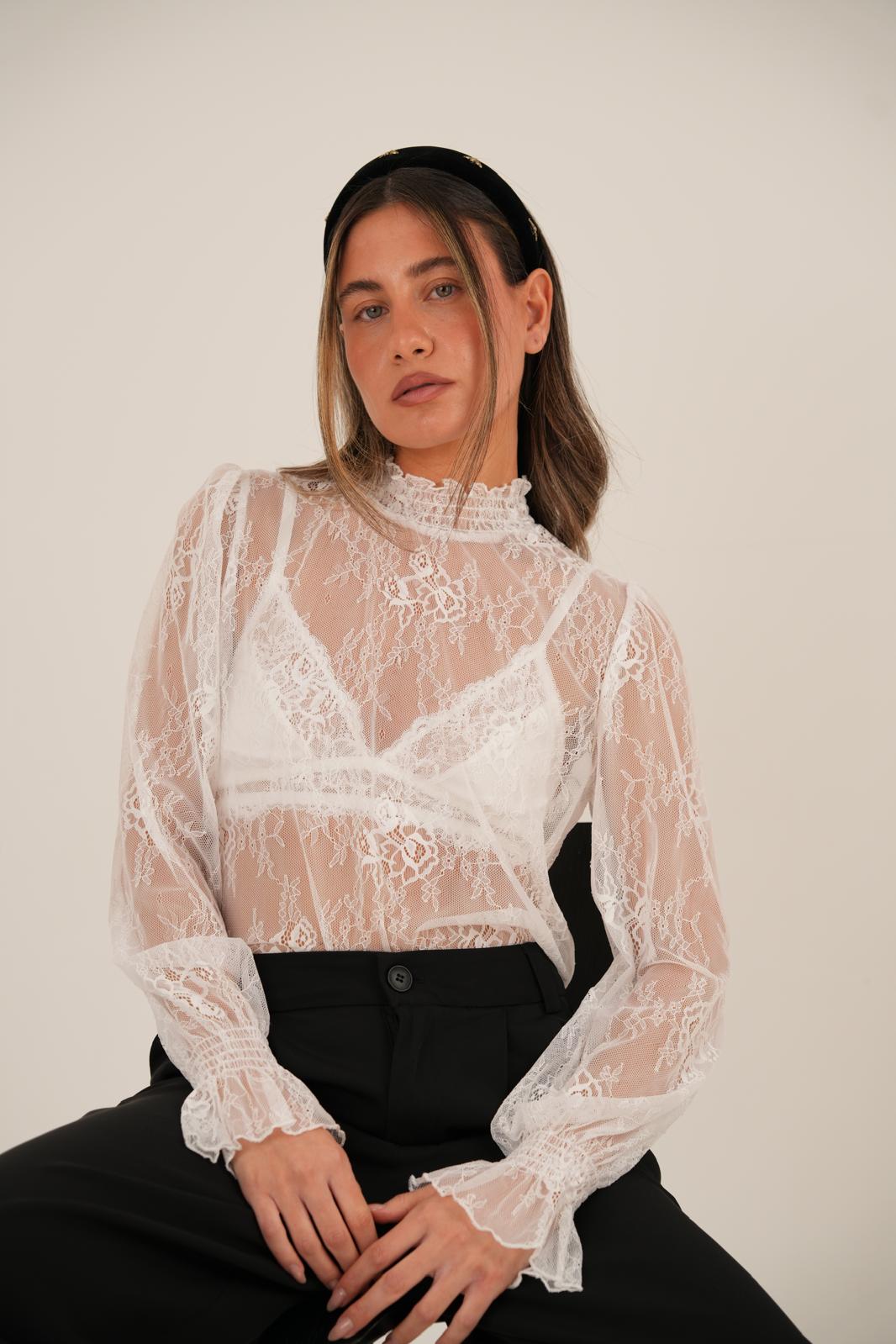 חולצת תחרה עשירה ומיוחדת עם נוכחות אלגנטית עיצוב נשי ומעודן שמתאים גם לאירוע וגם ליום-יום בד תחרה איכותי עם מראה מוקפד החולצה קיימת ב- 2 צבעים, שחור ולבן מידת וואן סייז בגזרה מחמיאה המתאימה עד מידה 38