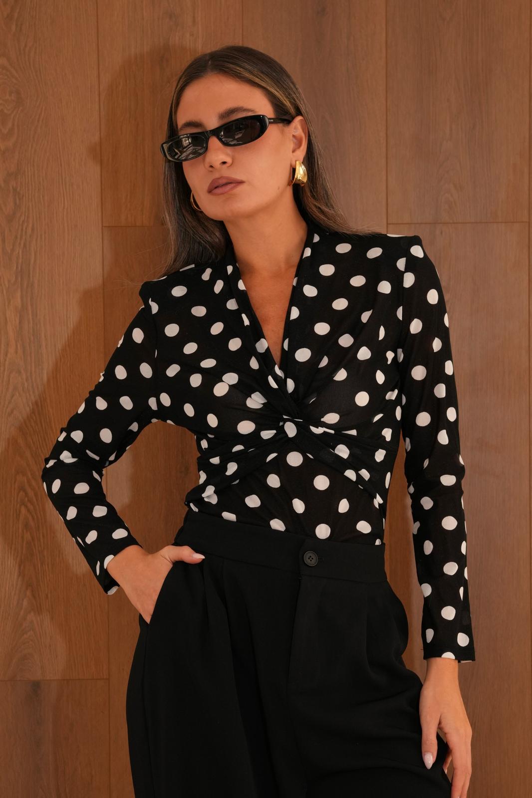 חולצת ריילי עשויה מבד סטרץ נעים שמחמיא לגוף ויושב מושלם מפתח וי מסובב יוצר טוויסט אלגנטי ומראה נשי עם סטייל הבד הגמיש מאפשר נוחות לאורך כל היום ולוק מוקפד זמינה ב- 3 הדפסים שחור נקודות, מנומר חום ופרחוני לבן מידה וואן סייז שמתאימה עד מידה 42 לנוחות וסטייל מושלם