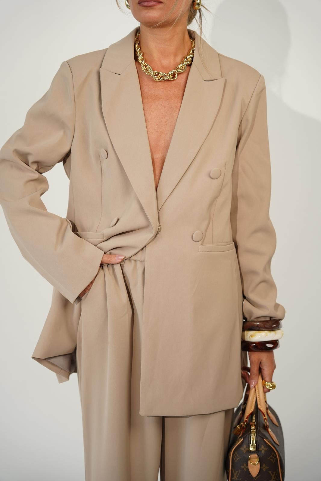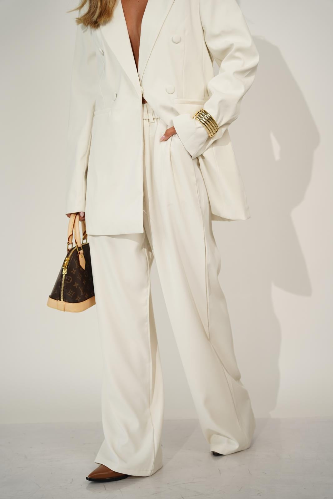 חליפת קיילי היא חליפה אלגנטית ומוקפדת עם מראה נשי ומרשים במיוחד הג׳קט המחויט כולל ביטנה איכותית שמעניקה מבנה ונפילה מושלמת המכנס בגזרה ישרה עם גומי במותן לנוחות יומיומית וללוק מחמיא עשויה מבד אלגנטי ואיכותי שמתאים גם ליום וגם לערב זמינה ב- 3 צבעים בז׳, שחור וקרם מידה וואן סייז שמתאימה עד מידה 42 לנוחות וסטייל מושלם