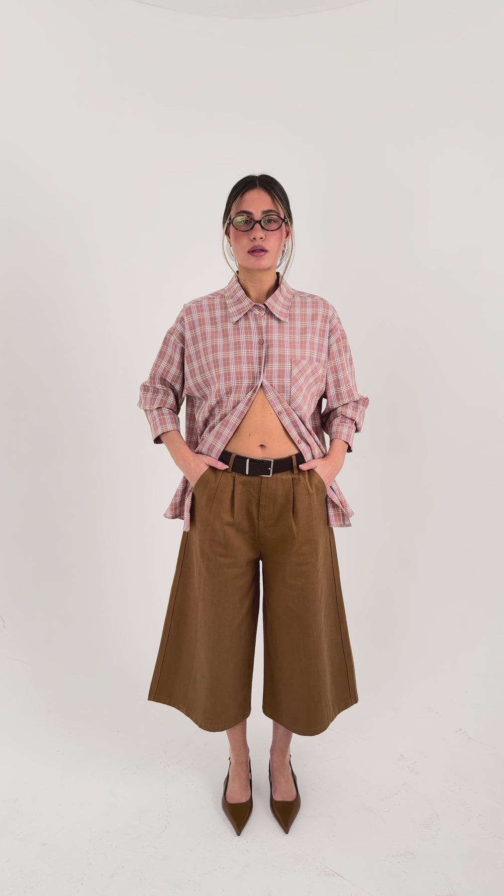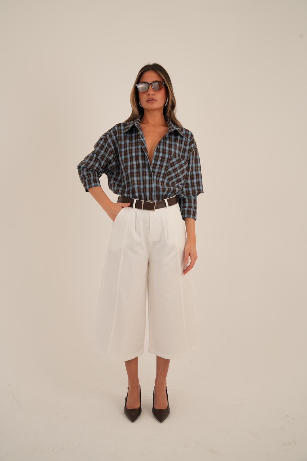 מכנס ברמודה באורך מדויק למראה אלגנטי ונקי גזרה מחויטת עם כיסים בצידי המכנס לנוחות וסטייל עשוי בד נעים ואיכותי עם גימור מוקפד המכנס מגיע עם חגורה תואמת להשלמת הלוק קיים ב- 3 צבעים לבן, חום ושחור במידות סמול מתאים עד מידה 36 ומדיום מתאים עד מידה 38
