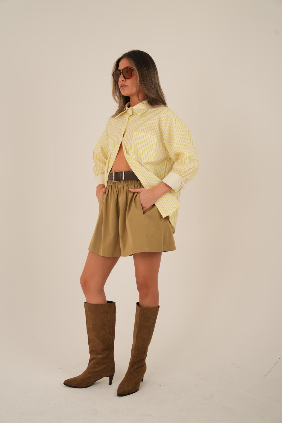 מכנס קצר בגזרת אוברסייז מבד איכותי ונעים גומי גבוה במותן וכיסים בצידי המכנס לנוחות מרבית גזרה מדויקת שמעניקה מראה מחמיא ולא מתאמץ המכנס קיים ב- 3 צבעים שחור, קרם ובז׳ מידת וואן סייז בגזרה רחבה המתאימה עד מידה 42