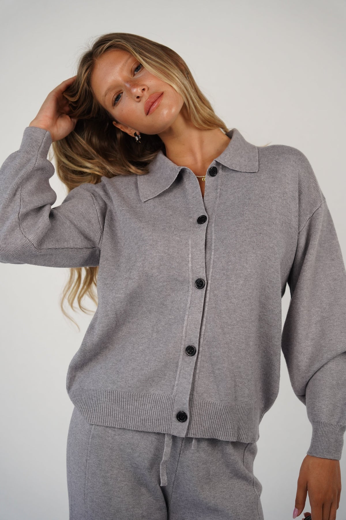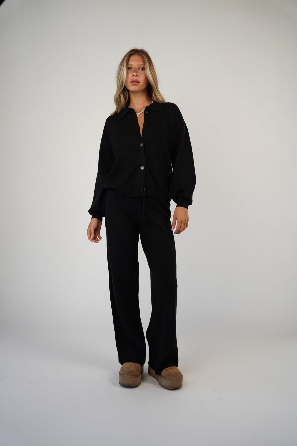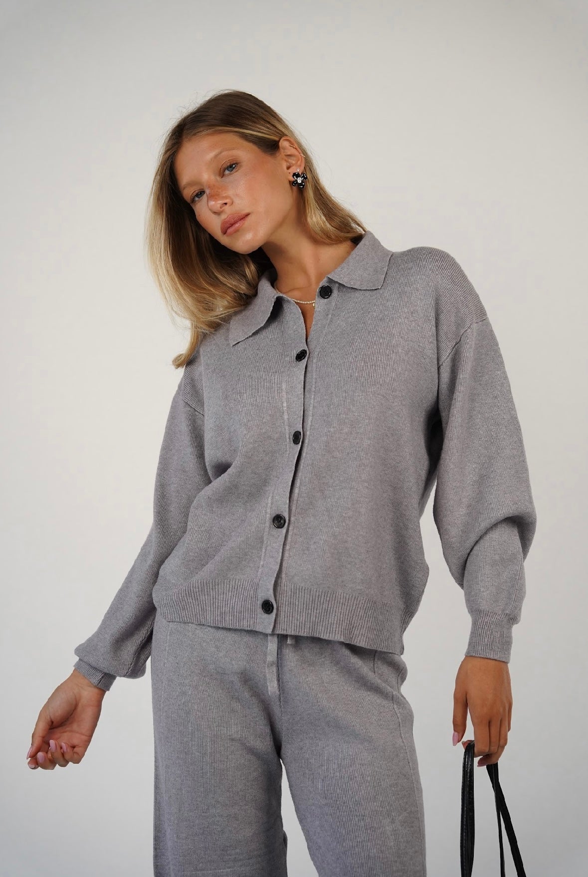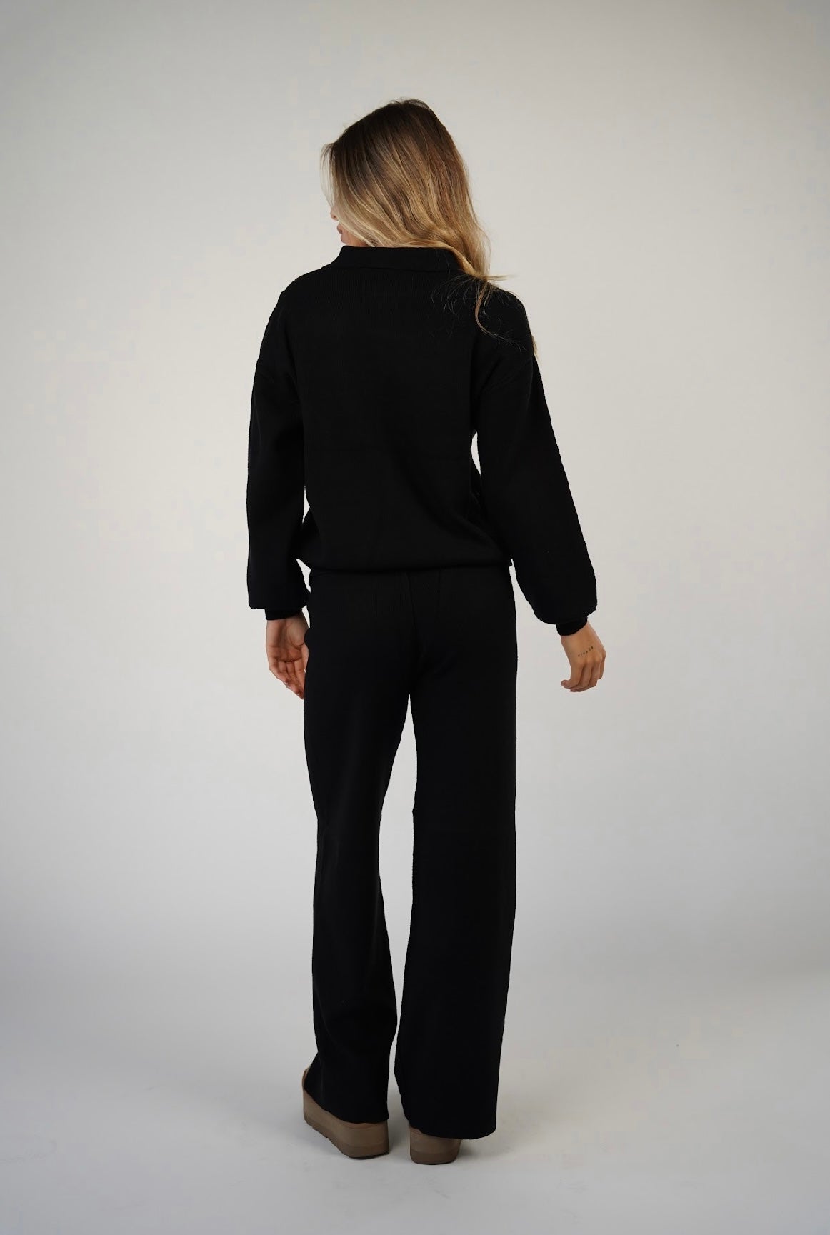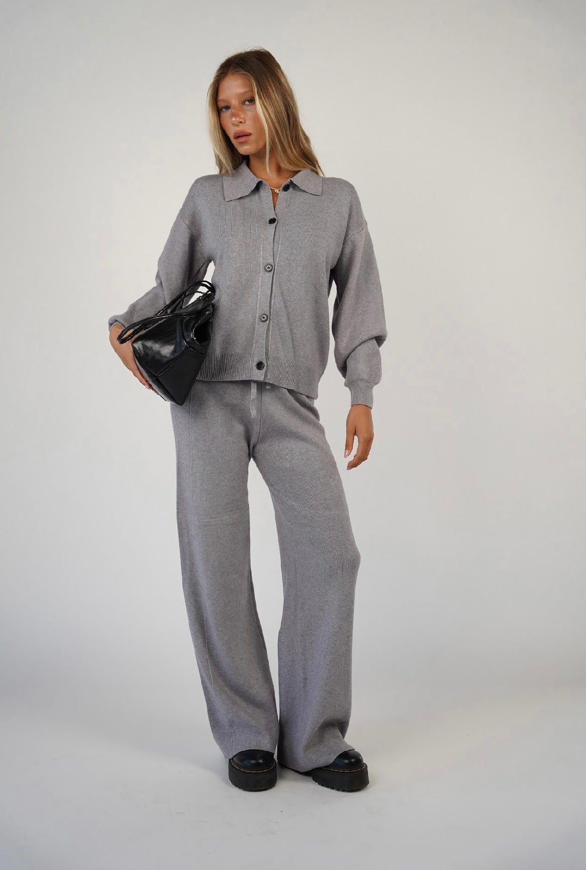 •מכנס ארוך + חולצת סריג עם כפתורים