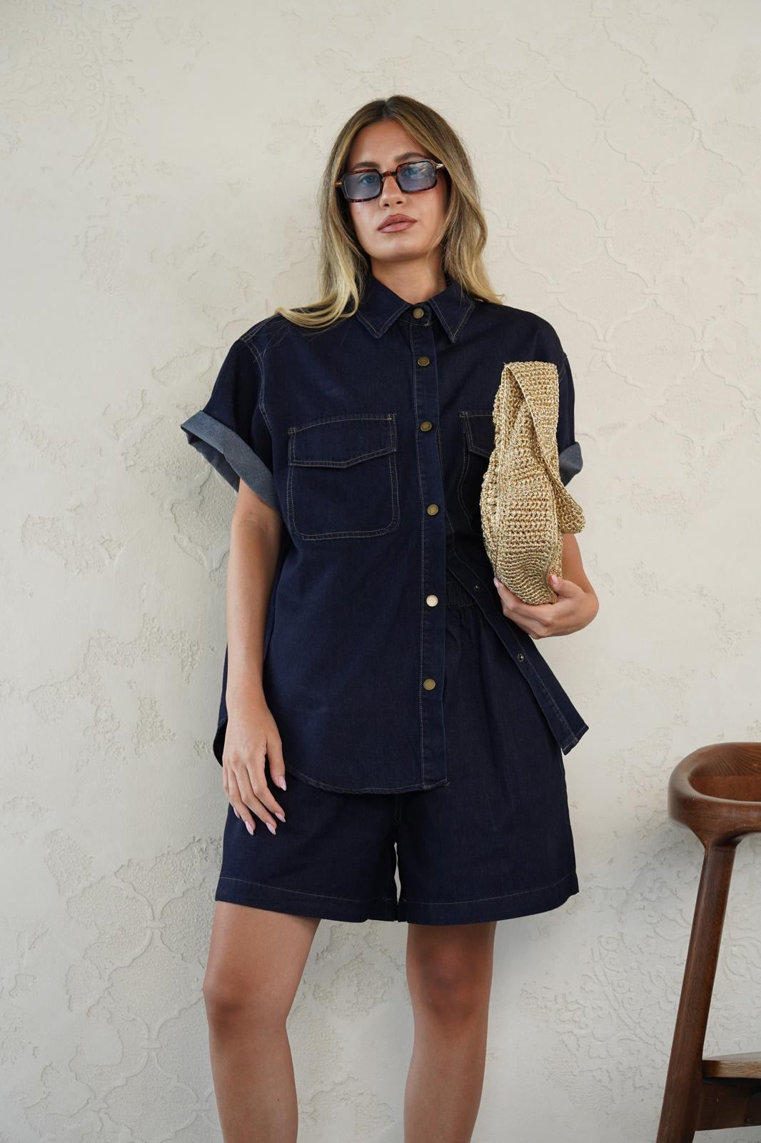 כוללת חולצה מכופתרת בגזרת אוברסייז מחמיאה