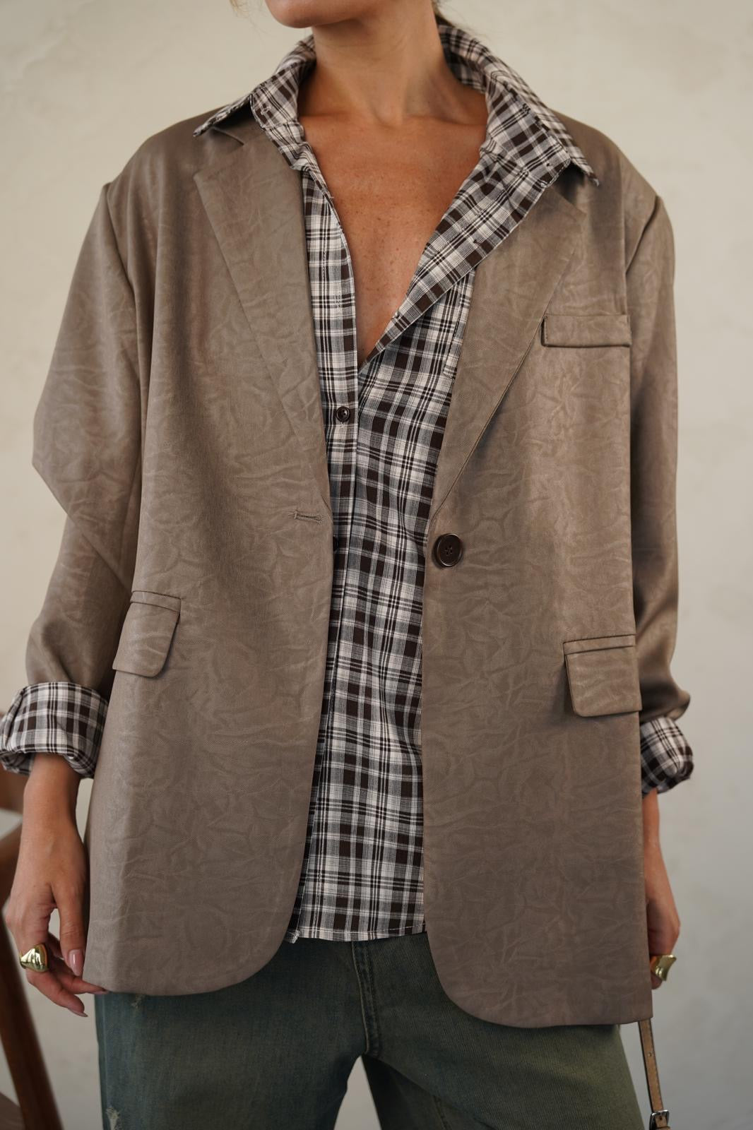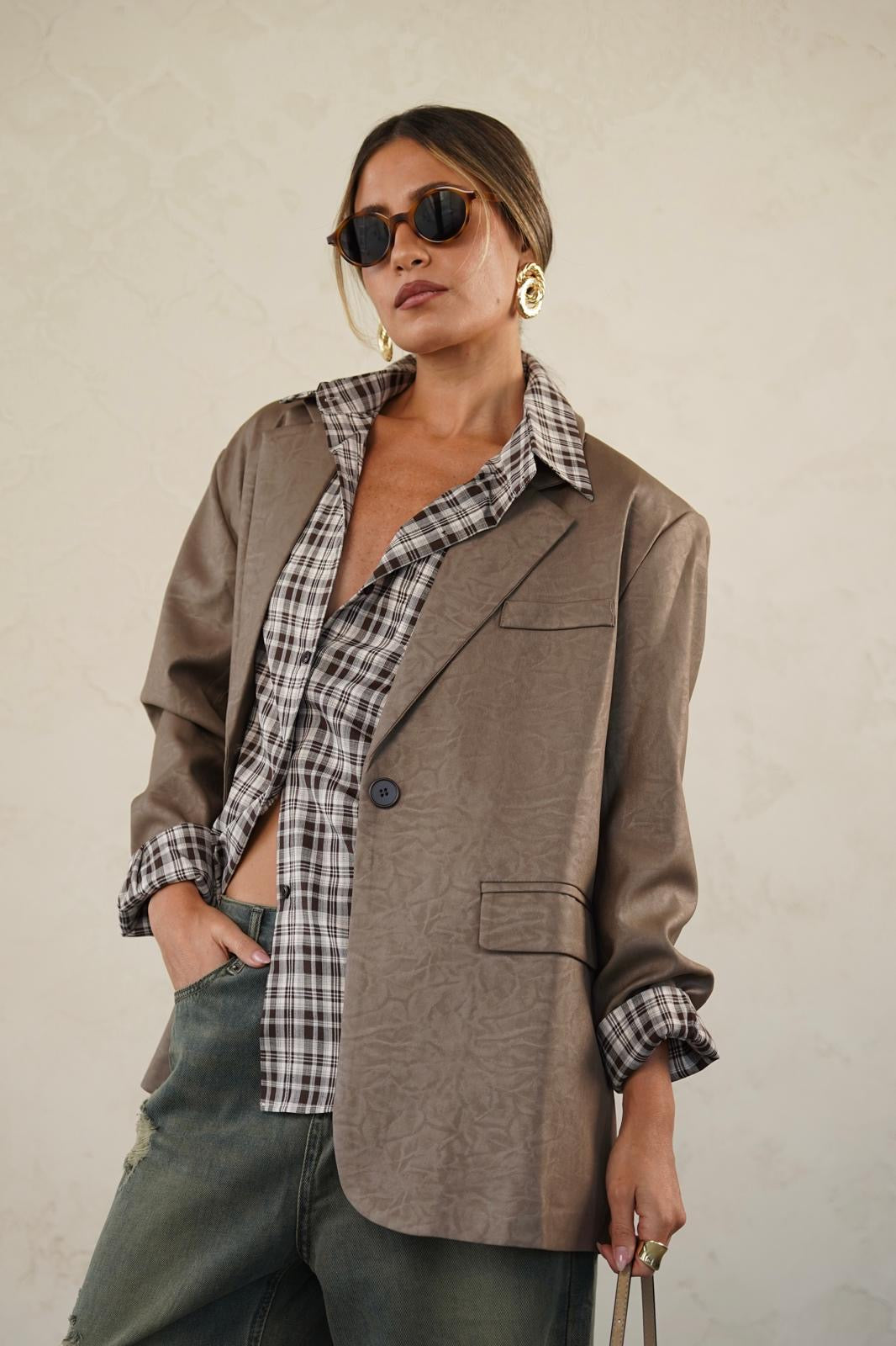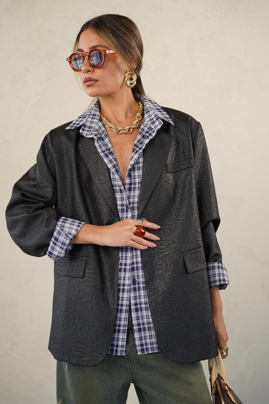 ג׳קט אוברסייז עם טקסטורה בבד לנשים - דגם נינה בצבעים שחור וחום