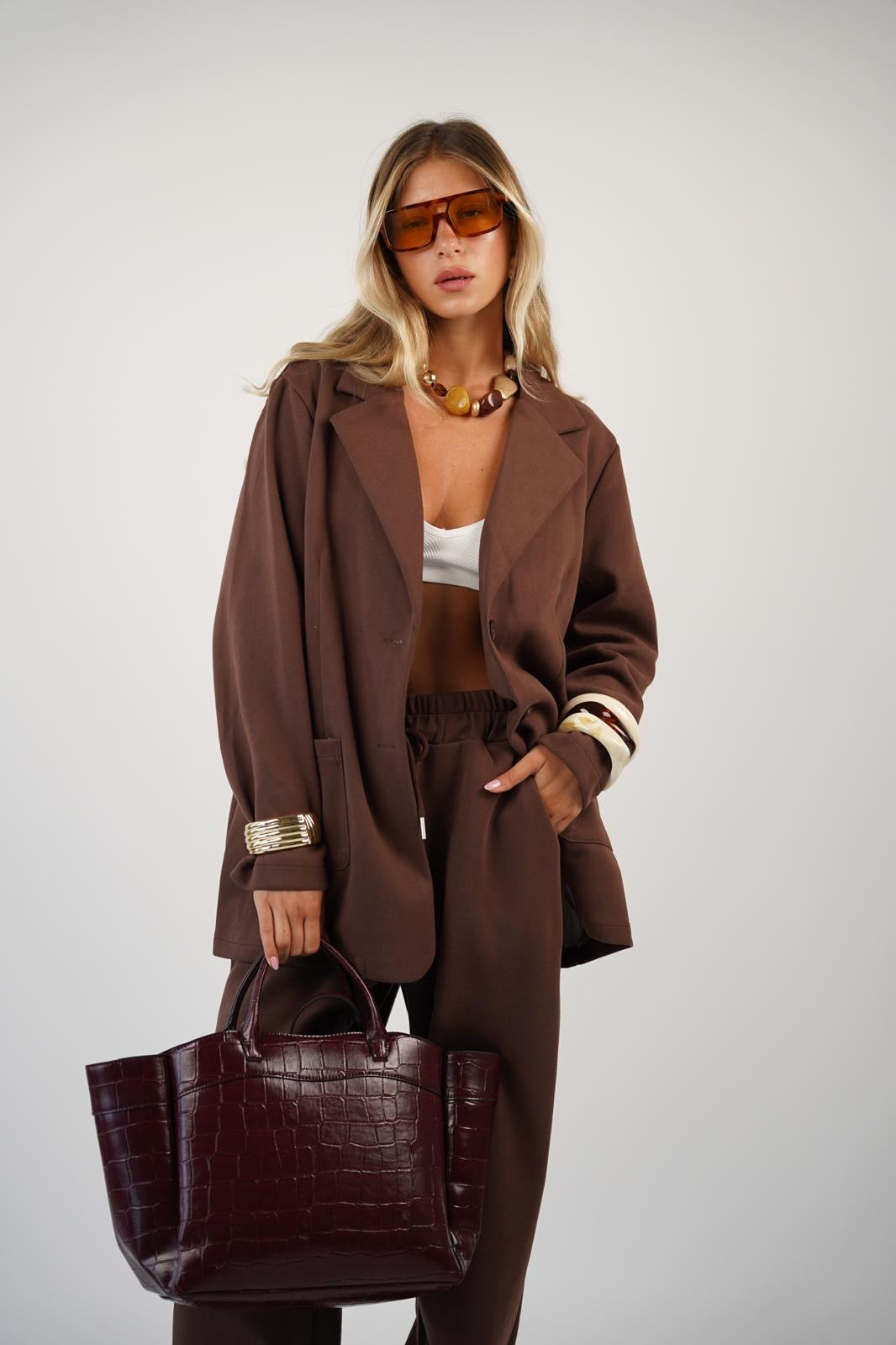 חליפת ספורט אלגנט לנשים - דגם לולה בצבעים חום, שחור וקרם