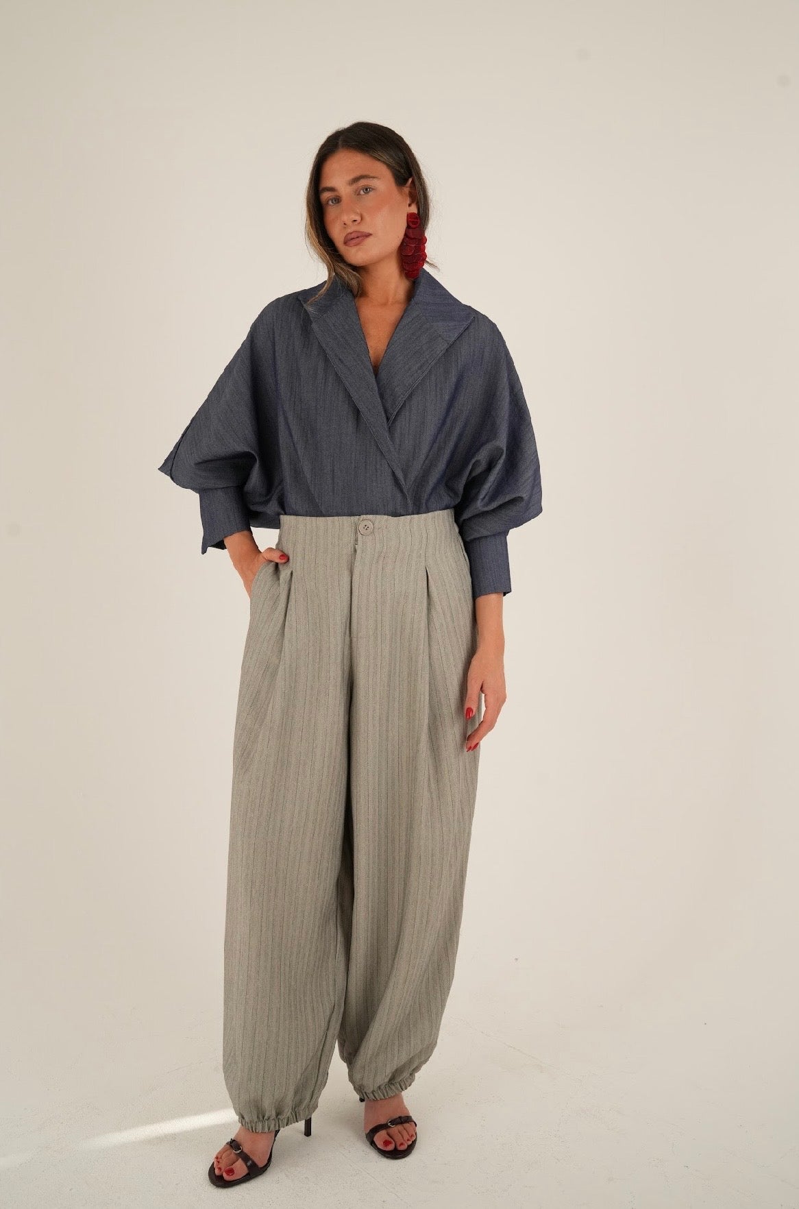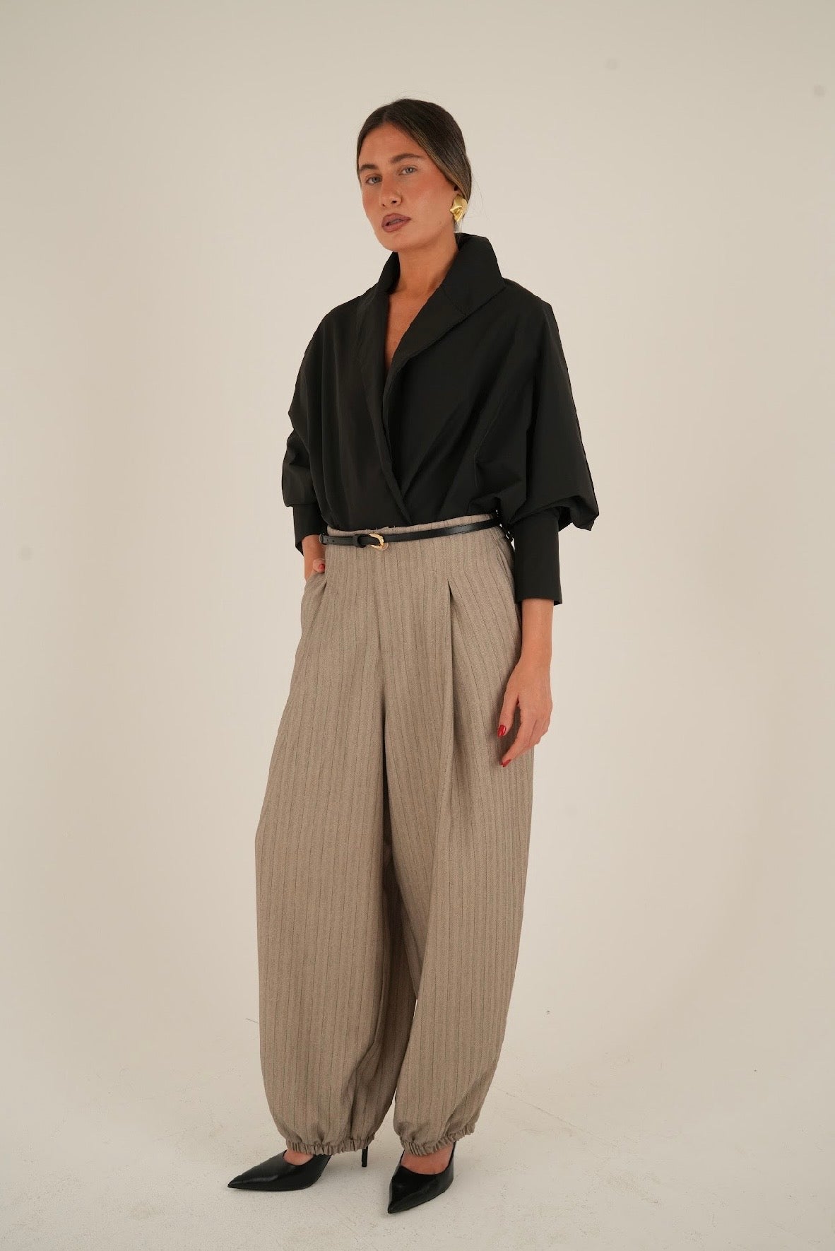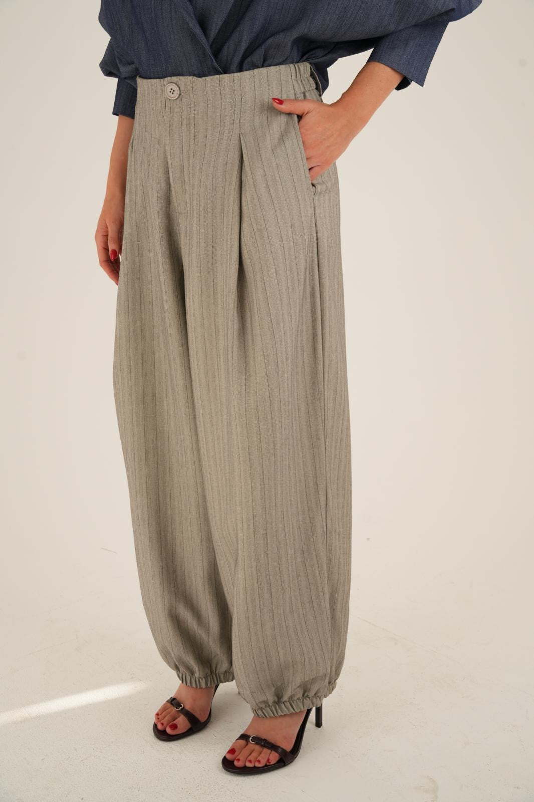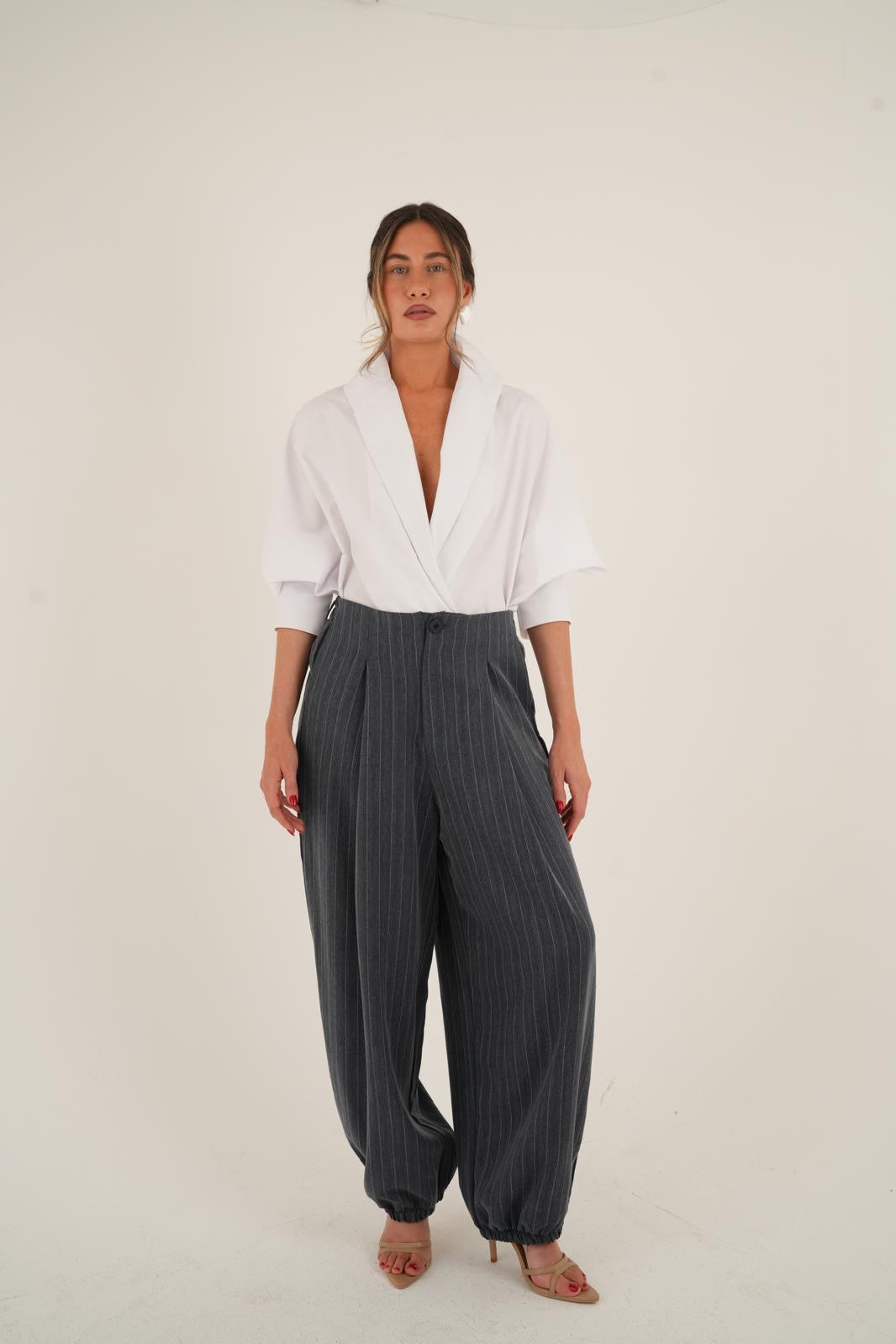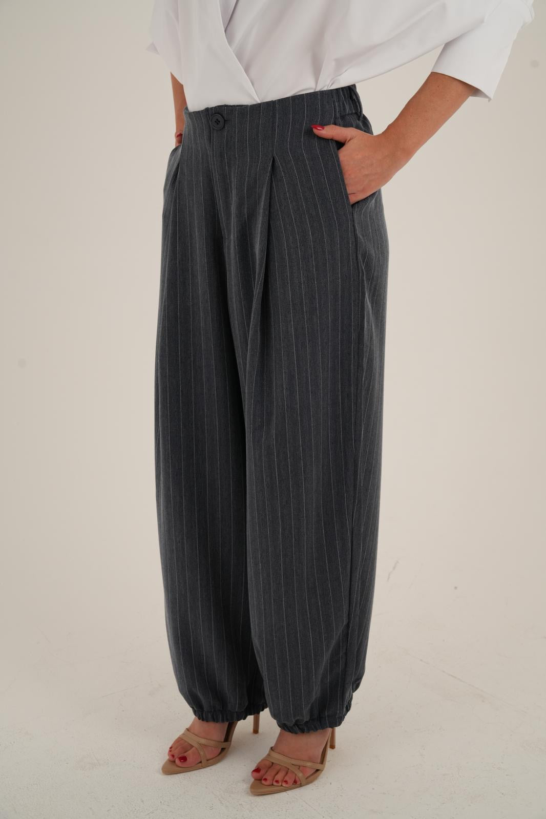 מכנס פסים בגזרת בלון מחמיאה ומעודכנת
